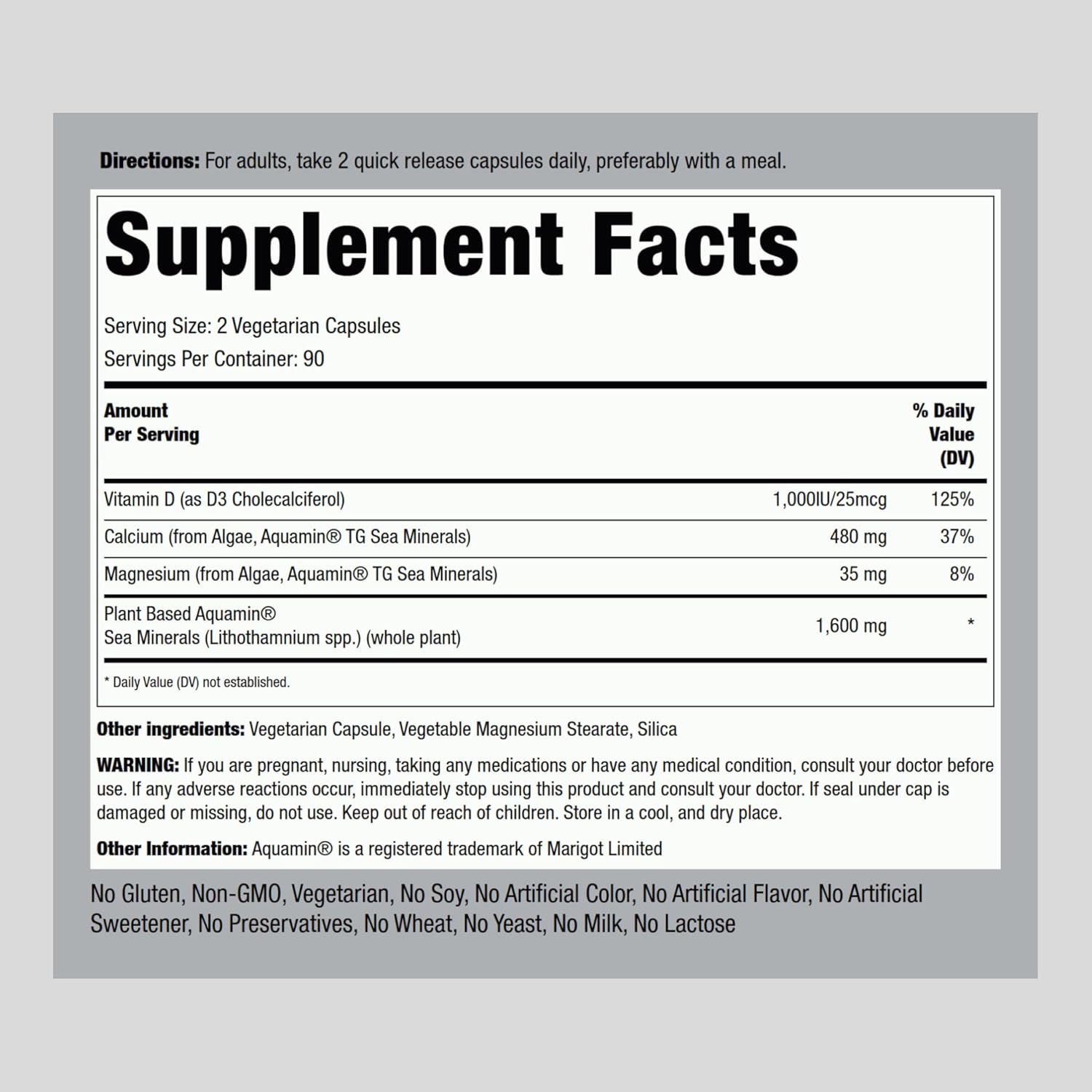 Piping Rock Red Mineral Algae | Vegetarian Calcium | 180 Capsules | Plant Based Plus Trace Minerals | Plus D3 1000 IU | Non-GMO, Gluten Free Supplement