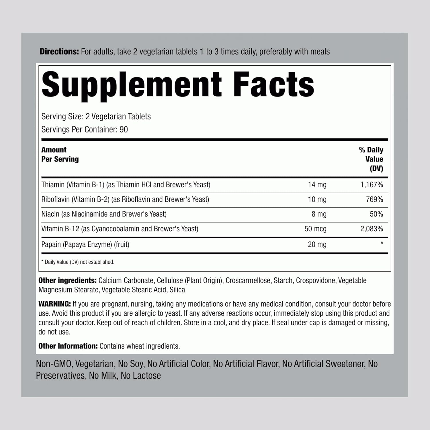 That’s why we’ve created our fast-dissolve tablets with B Complex Plus 50 mcg of Vitamin B12 (as cyanocobalamin and Brewer’s Yeast). Our super high potency formula has Thiamin, Riboflavin, Niacin, and Papaya enzyme included that work synergistically within your body. Grab a bottle and enjoy the benefits of this quality supplement today!