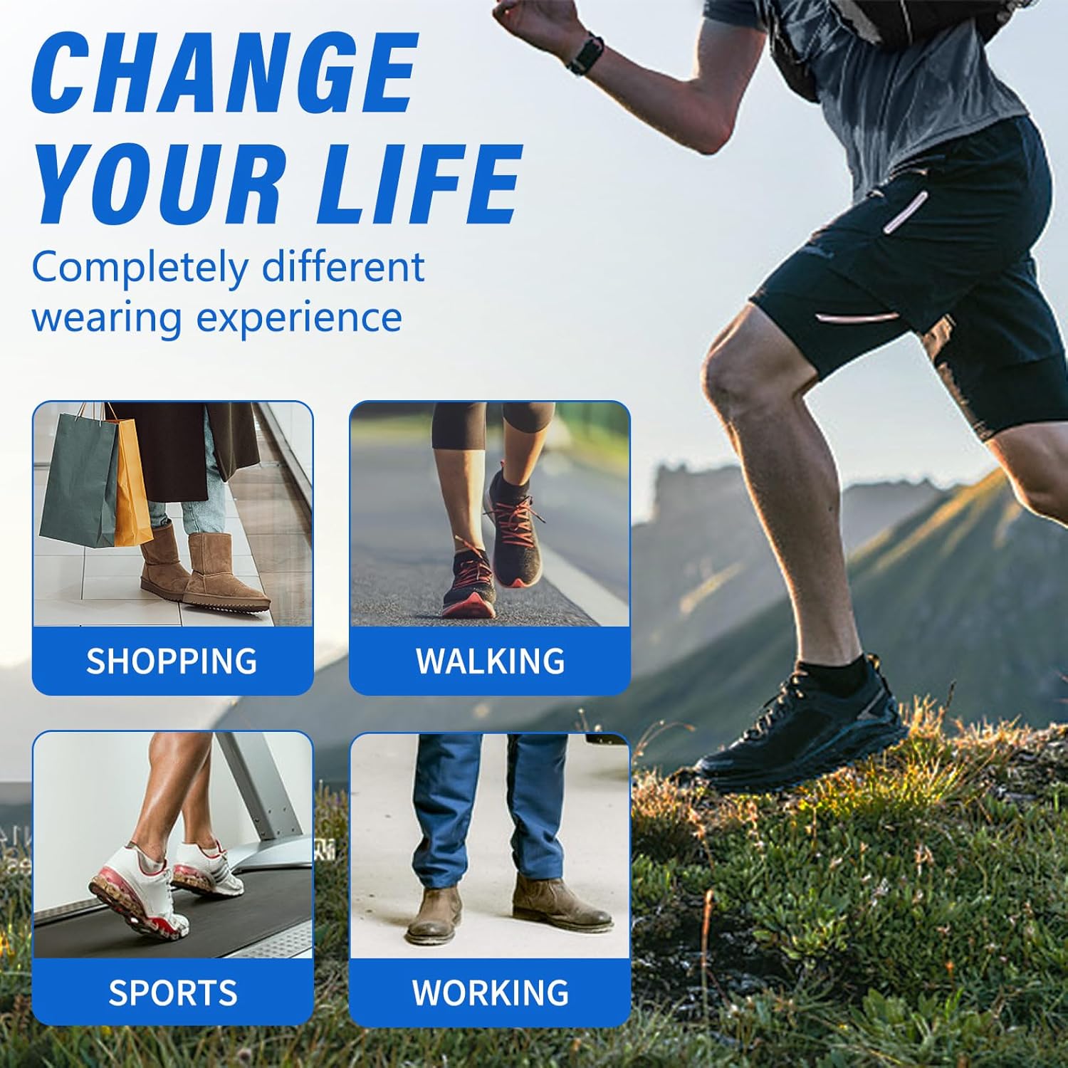 【HIGH QUALITY MATERIAL】Skin friendly fabric matrix fabric design, comfortable and breathable, anti-slip and wear-resistant, keep feet fresh. These whole shoe insoles are made of high quality PU, soft and resilient, and the bottom front foot is equipped with gel cushion, which further alleviates the impact force brought by the foot and prevents foot injury