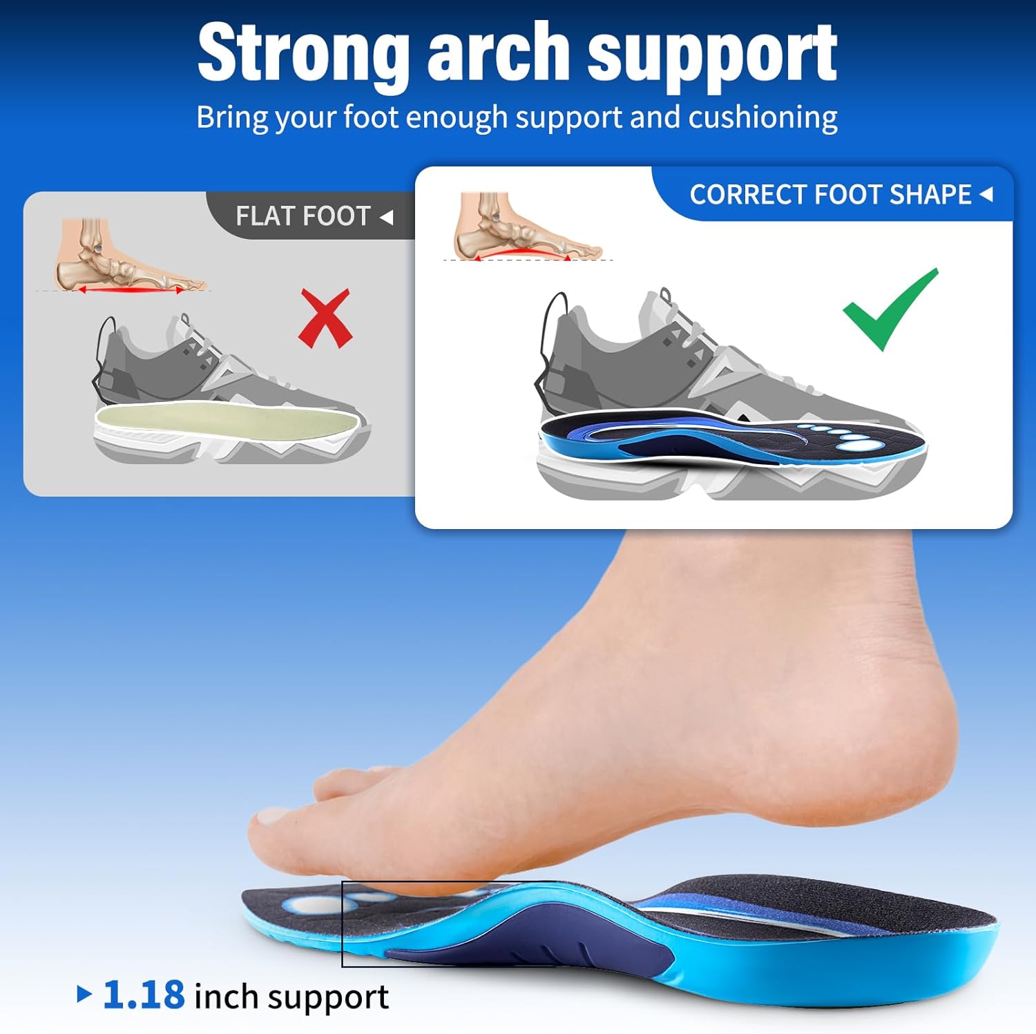 【TRIM FOR DAILY USE】These plantar fasciitis insoles are suitable for work shoes, leather shoes, athletic shoes, hiking shoes and more. Before purchasing, please carefully refer to the size table to obtain the most appropriate size of insoles, and cut to get the most suitable insoles for you. These high arch insoles are ideal for sports, daily work, and long standing periods