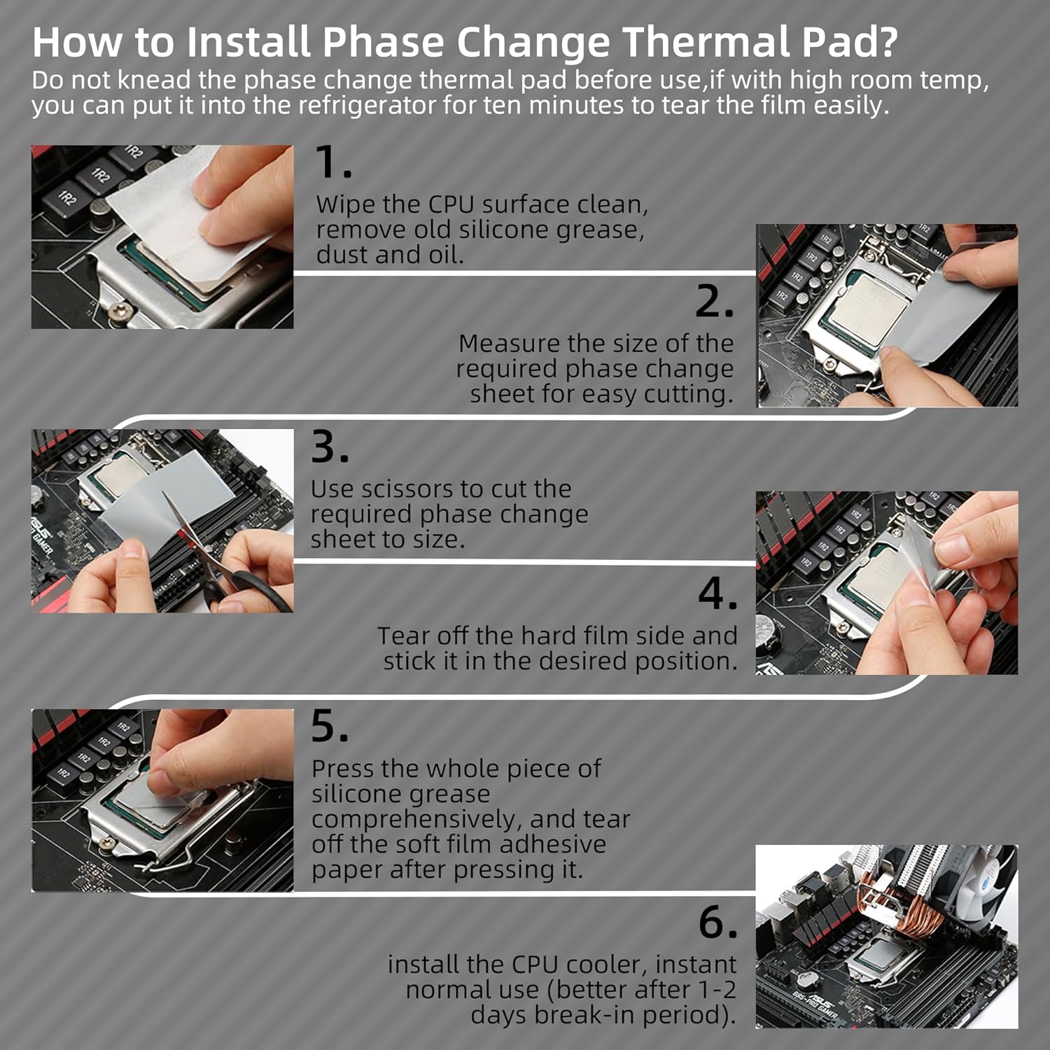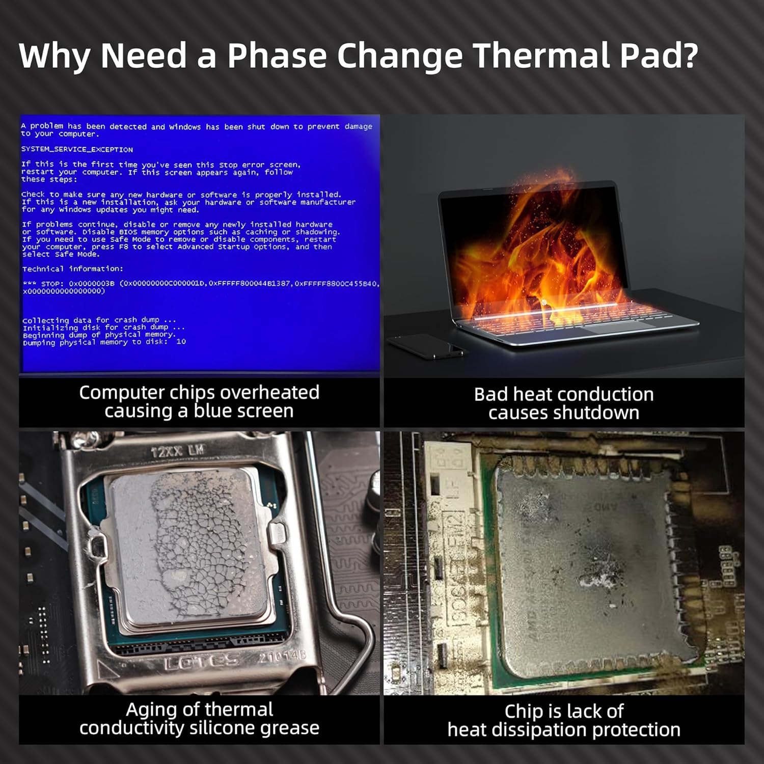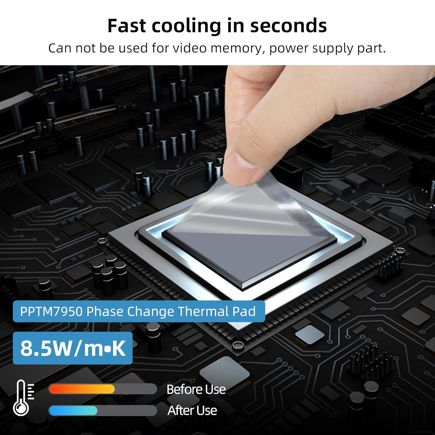 【Quality Materials】PPTM7950 is made of high thermal conductive phase change material(PCM), which can change from solid to semi-liquid when heated, and perfectly fit the chip surface. It is more durable and stable than traditional thermal paste.