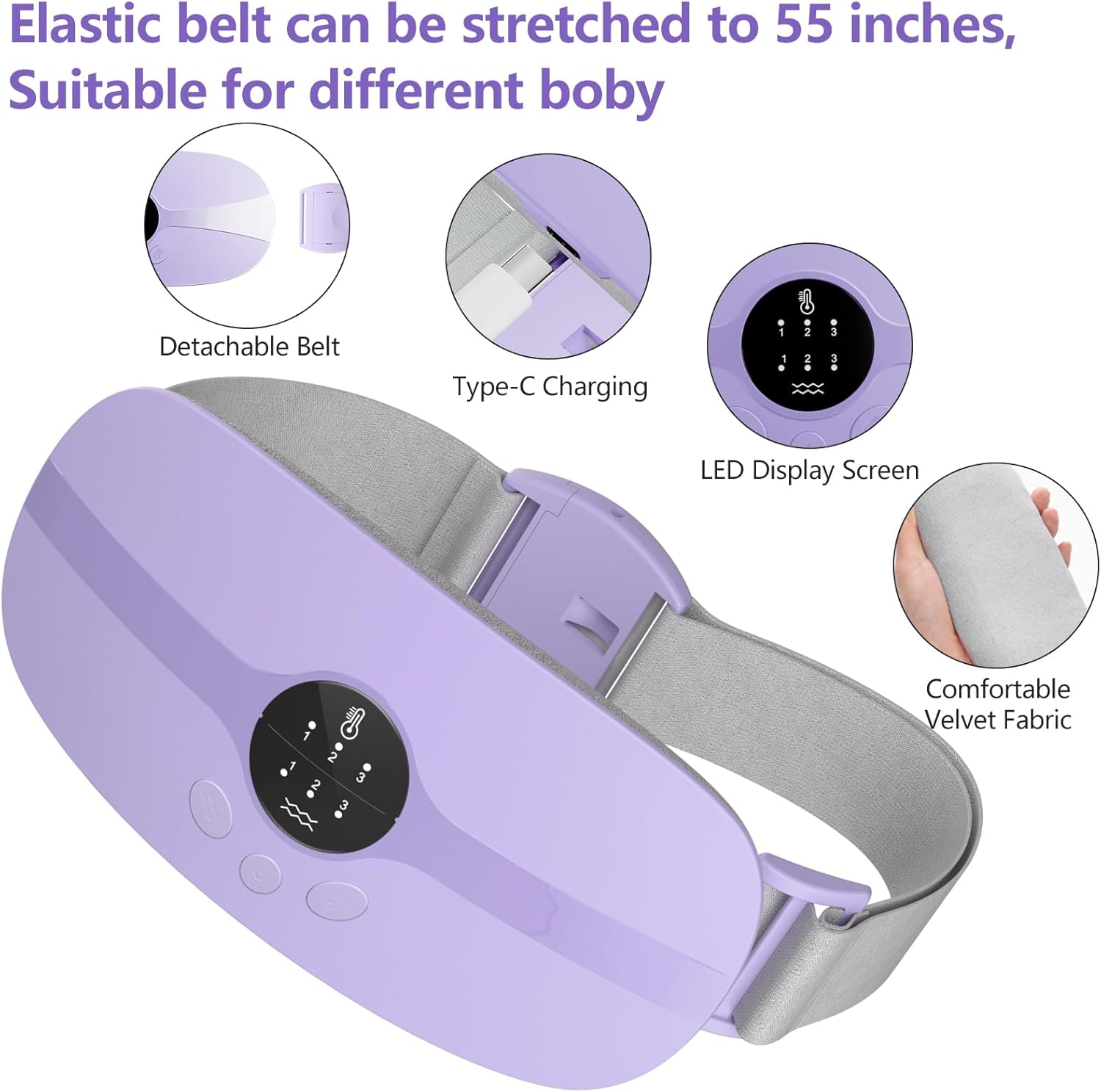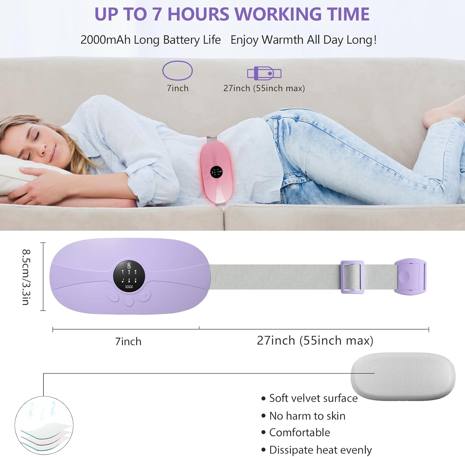 Protable Heating Pad for Period Cramps,Cordless Menstrual Heating Pad with 3 Heat Levels and 3 Vibration Massage Modes, for Period Pain,Best Gifts for Her, Women and Girl (Purple)