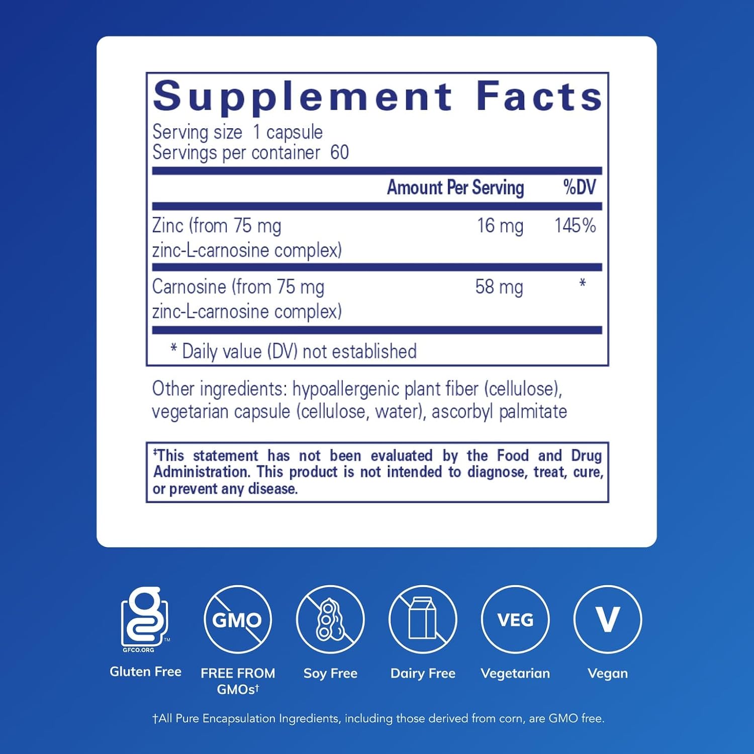 Pure Encapsulations Peptic-Care – Zinc-L-Carnosine – Gut Health & Antioxidant Supplement – Supports Gastric Health* – Vegan & Gluten-Free – 60 Capsules