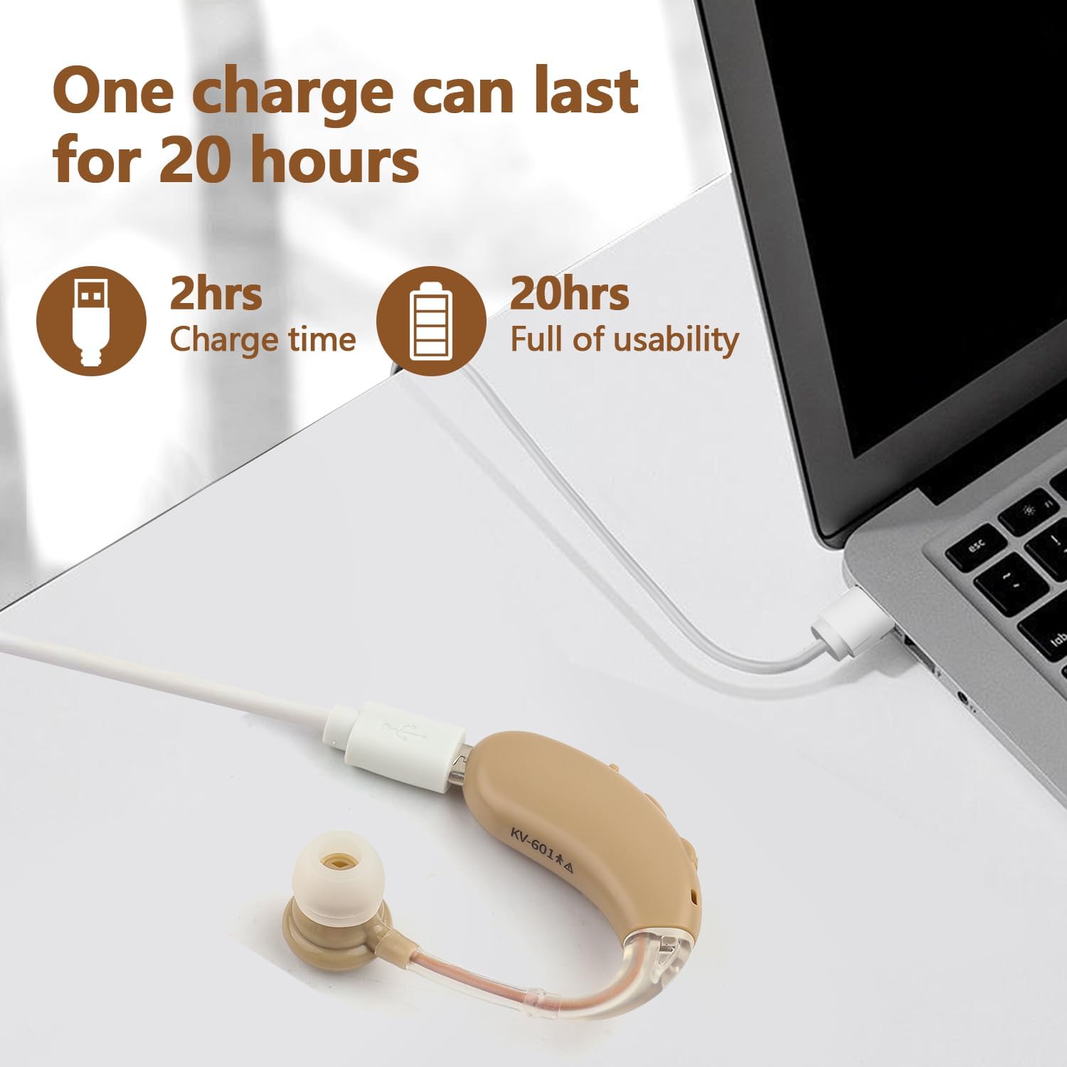 LONG-LASTING RECHARGEABLE POWER: Enjoy up to 20 hours of uninterrupted use with a quick 2-hour charge. These rechargeable hearing aids eliminate the need for disposable batteries.