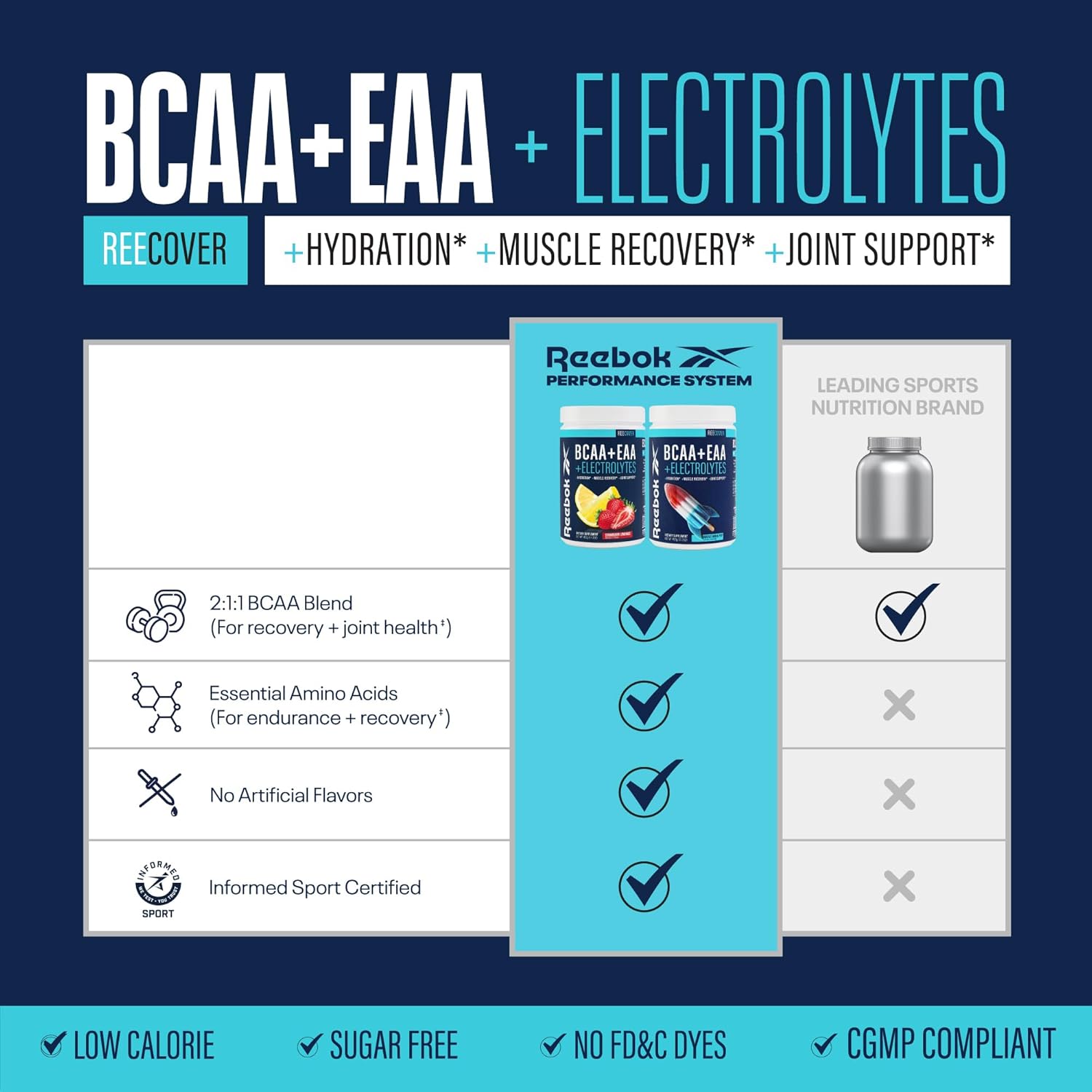 Scientifically Formulated for Faster Recovery: With Reebok’s performance-driven legacy, we’ve spent decades understanding what athletes need. Enter [REE]COVER. Speed up muscle recovery and support your joints with a powerhouse blend of amino acids that helps reduce soreness and fatigue. With [REE]COVER, you’ll be ready to attack your next workout harder and faster. Plus, our formula is clean and made to the highest standards, Informed Sport Certified, with zero sugar, and no artificial dyes.