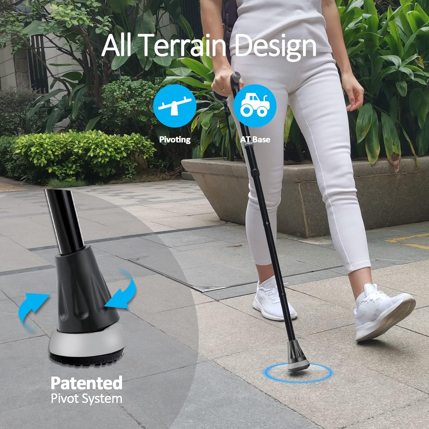 ALL TERRAIN-Safety: The AT non-skid base brings extra safety while walking on uneven ground like bumpy path, plank road, grass or even beach. No water trap replacement tip offers more confidence to users of walking cane, crutches and even walker. Non-standing alone rubber base makes user looks more dignity.