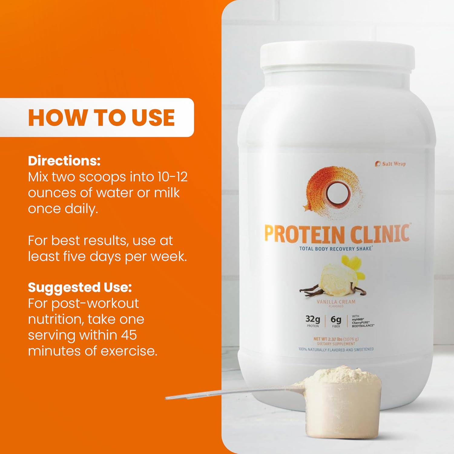SaltWrap Protein Clinic – Total Body Recovery Shake with Collagen Peptides, HMB, Tart Cherry Extract, Pea Protein Powder Isolate, Prebiotic Fiber for Joints Natural Muscle Builder & Recovery – Vanilla