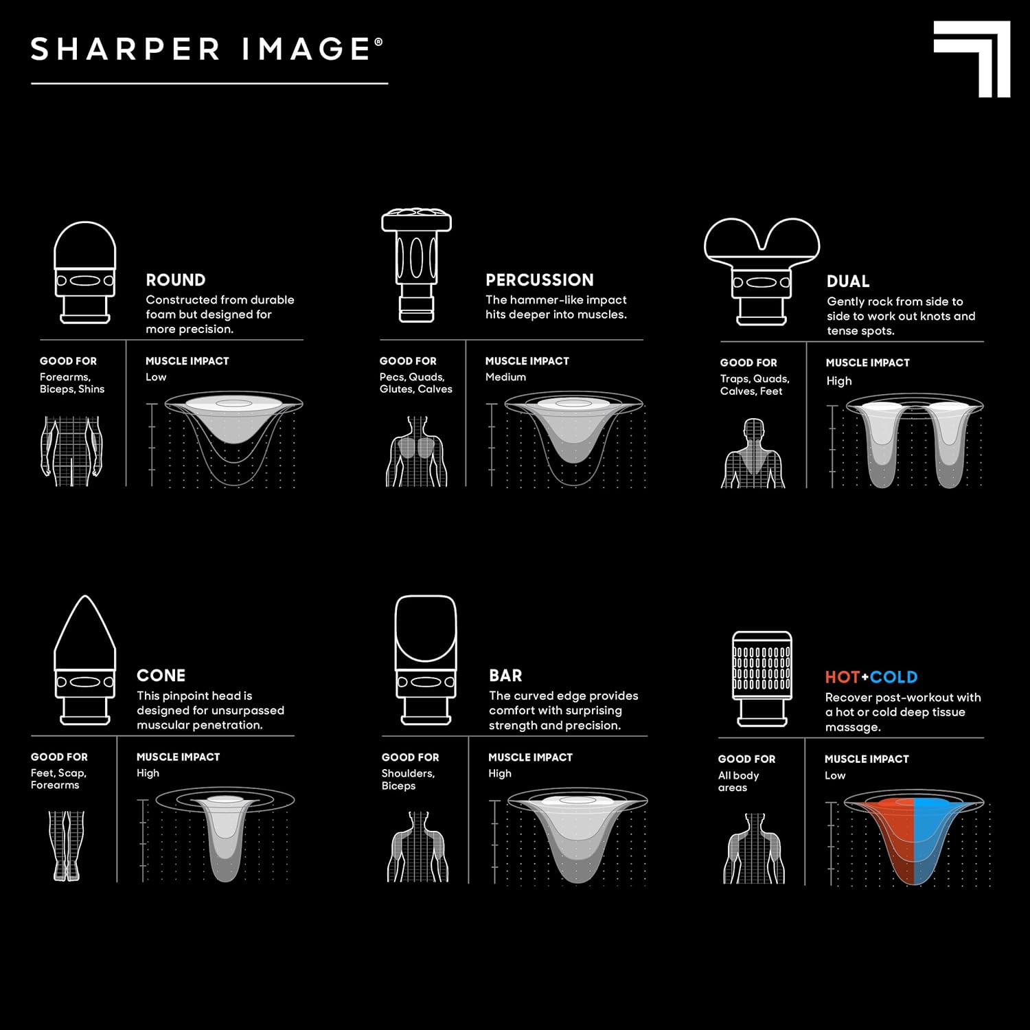 Sharper Image® Powerboost® Pro+ Hot & Cold Deep Tissue Massage Gun – 6 Speeds, 6 Attachments, 5-Hour Battery, Travel Case, Charging Base, Shoulder & Back Massager, Pain Relief Tool, FSA Eligible