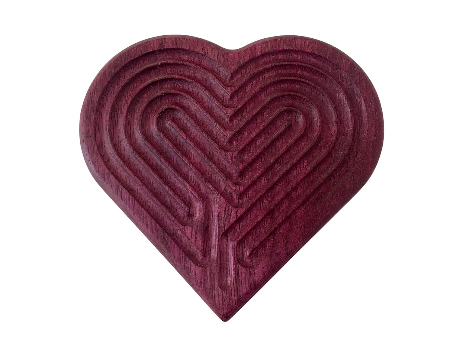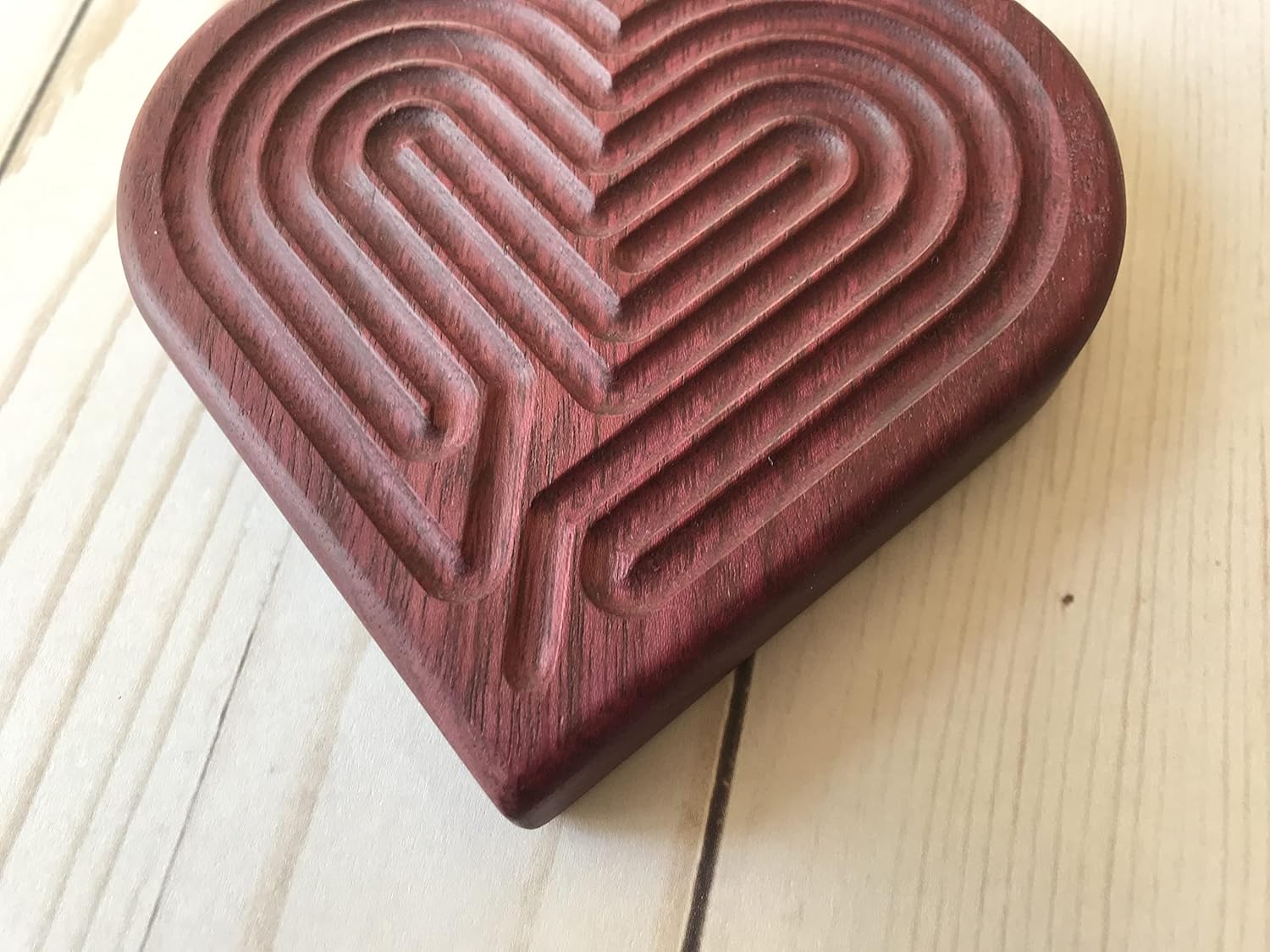 Small Heart Finger Labyrinth Finger Labyrinth for Mindfulness, Meditation and Stress Relaxation, Purpleheart Wood, Handcrafted in USA