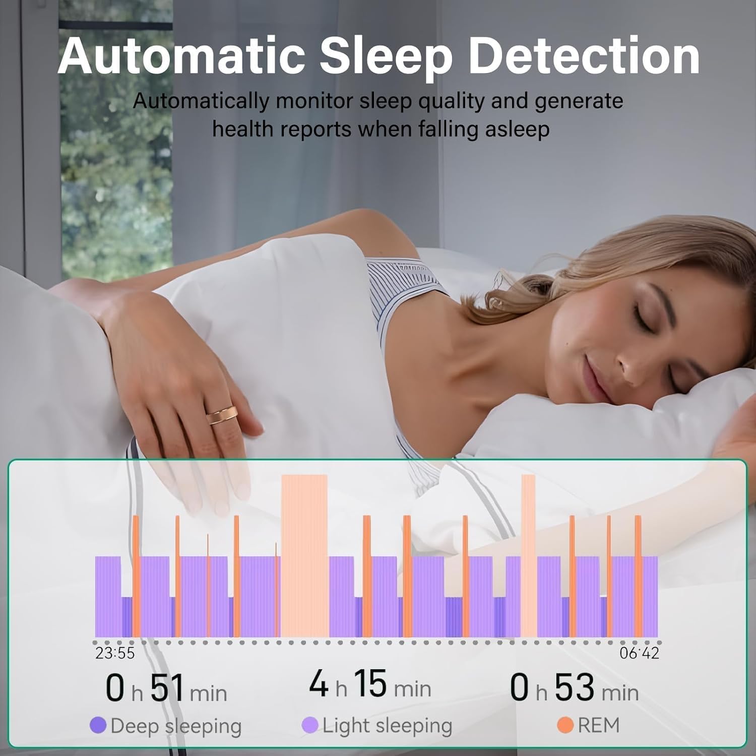 【 No Subscription Required】This sleep tracker syncs effortlessly with your phone via Bluetooth, allowing you to monitor your health data—such as blood pressure, steps, and sleep—whenever you need. The app is fully free, with no hidden subscription costs, giving you seamless access to your health information and making it easier than ever to stay on top of your well-being