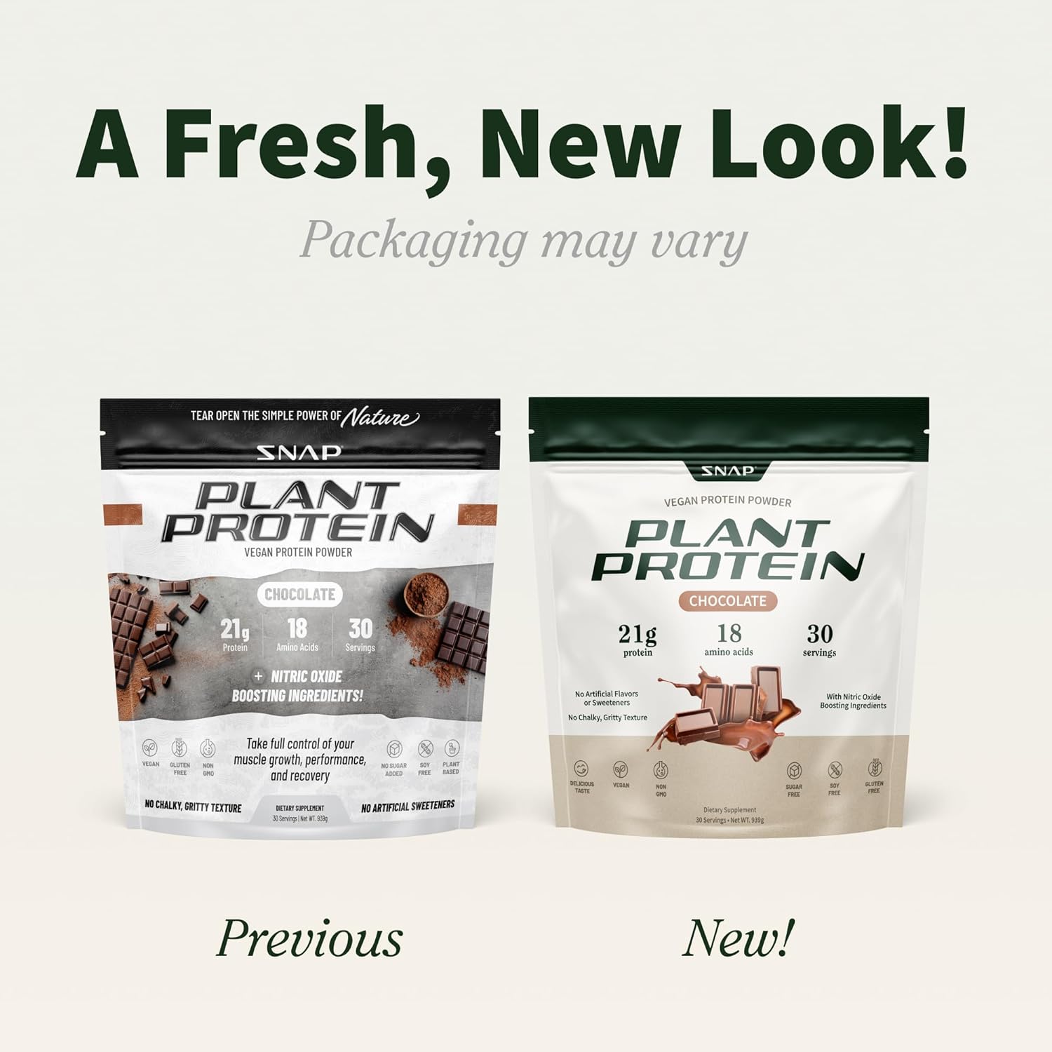 Snap Supplements Organic Plant Based Vegan Protein Powder Nitric Oxide Boosting Protein Powder, BCAA Amino Acid for Muscle Growth, Performance & Recovery – 30 Servings (Chocolate)