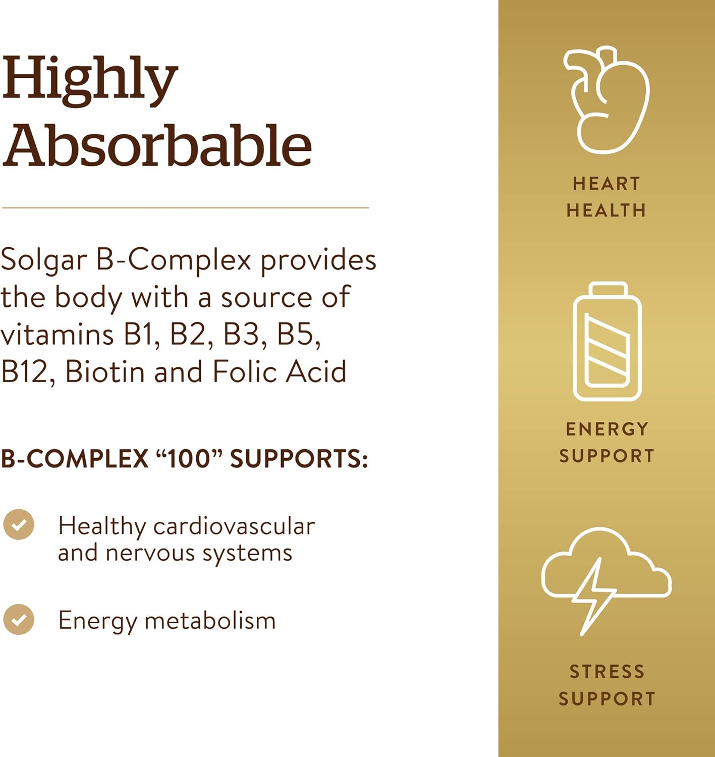 Nervous System Support; Vitamins that make up the B Complex support the health of the nervous system