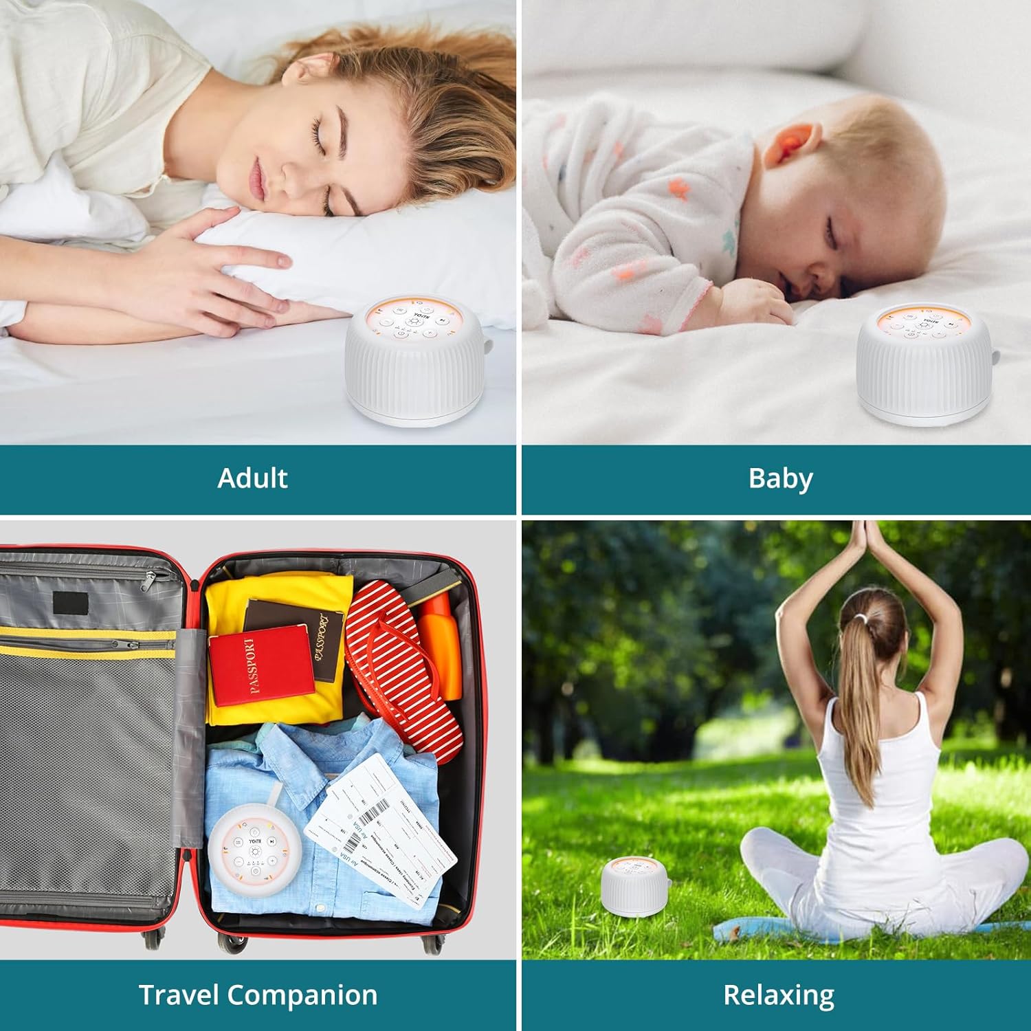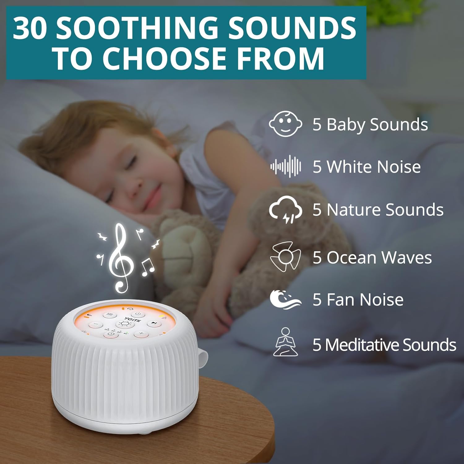 【30 Soothing Sounds for Total Relaxation】Enjoy 30 curated audio options, including lullabies, white noise, ocean waves, fan sounds, and meditation tracks. Perfect for helping babies sleep soundly, aiding adult focus during work or yoga, and creating a calming ambiance for study or relaxation.