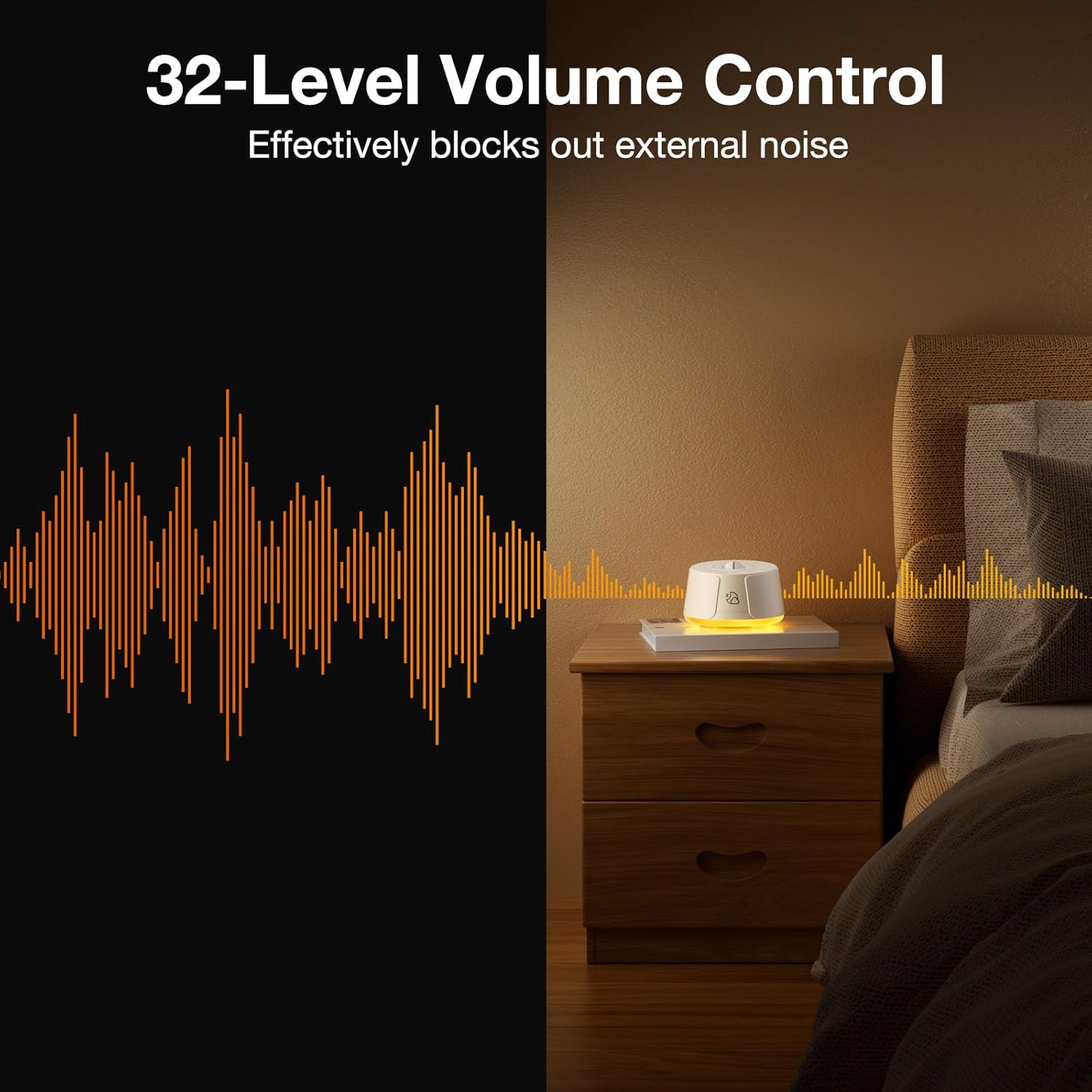 【Extended Timer & Memory Function】Equipped with 5 timers (up to 6 hours), this travel sound machine also includes a memory function, 32-level volume control, and a universal USB-C charging port. It’s an excellent choice for both home and travel use.