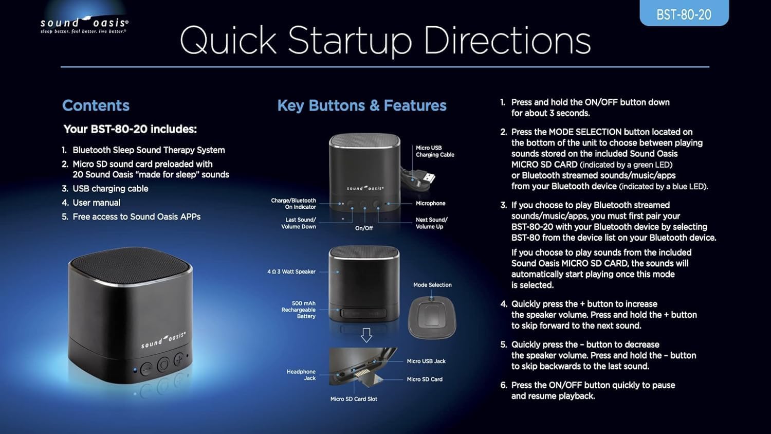 COMPLETE PET THERAPY SOLUTION. Includes sound machine, 20 built-in sounds, USB charging cable, Help Your Pet Relax & Sleep Booklet, no cost use of Sound Oasis pet therapy APP. Let our 25 years of sleep expertise help your pet achieve a happier and healthier life with better sleep and relaxation; high quality sounds and construction.