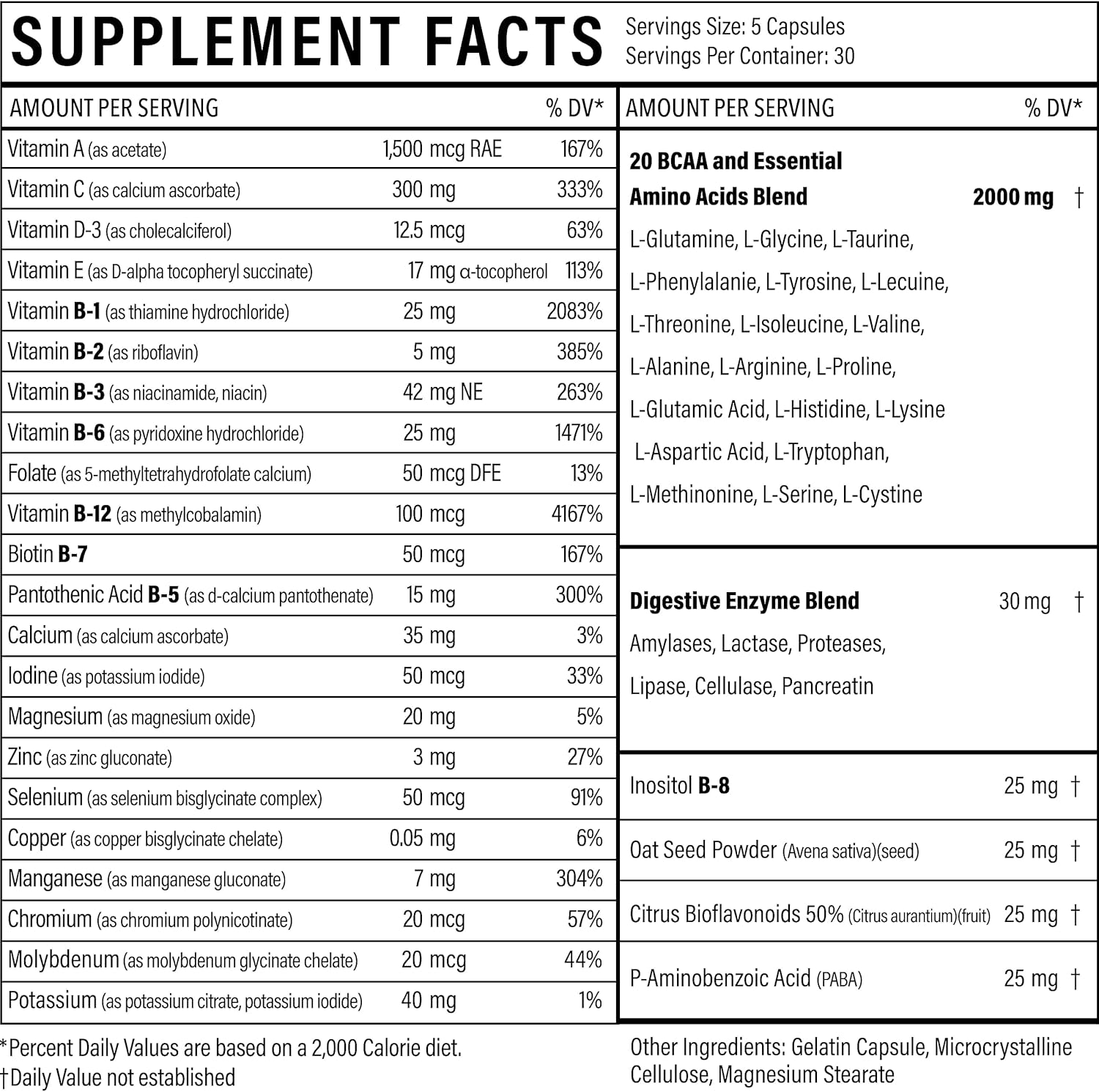 Sport Formula Daily Keto Superfood Multivitamin BCAA Amino Acid Powder Capsules for Men and Women. Won’t Upset Your Stomach: Natural Vitamin B Energy Complex: Anti Aging Immune System Support