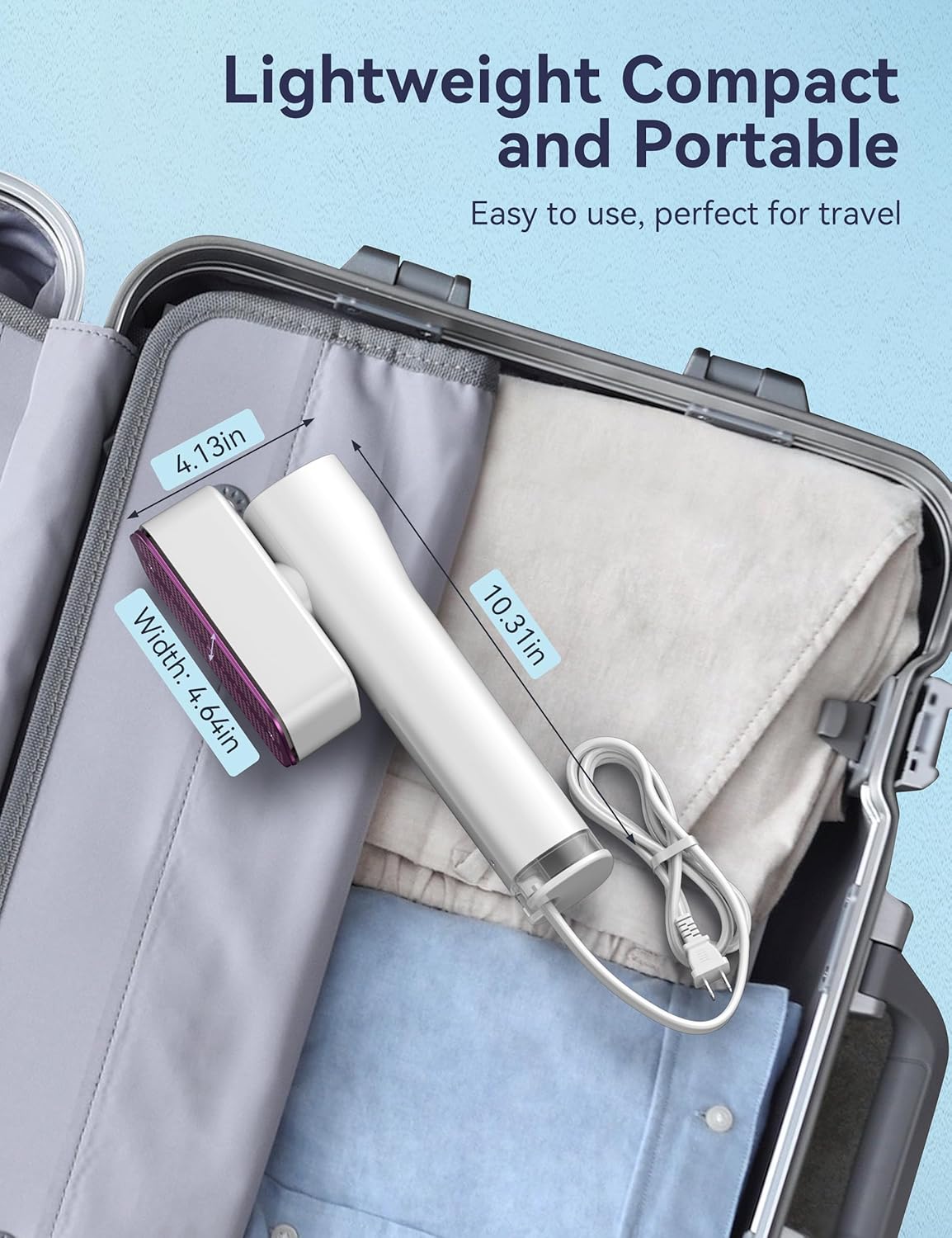 【Travel Essential, Safe and Convenient】This mini portable travel steamer for clothes is designed to be lightweight and portable, which can save space when traveling; stylish appearance, full-featured, it is a perfect choice for travel, home, business and other occasions (Note: Using it in Europe or other 220-240V regions may cause a short circuit). The insulated base and the included steam ironing gloves ensure safe use, providing you with comprehensive safety protection.
