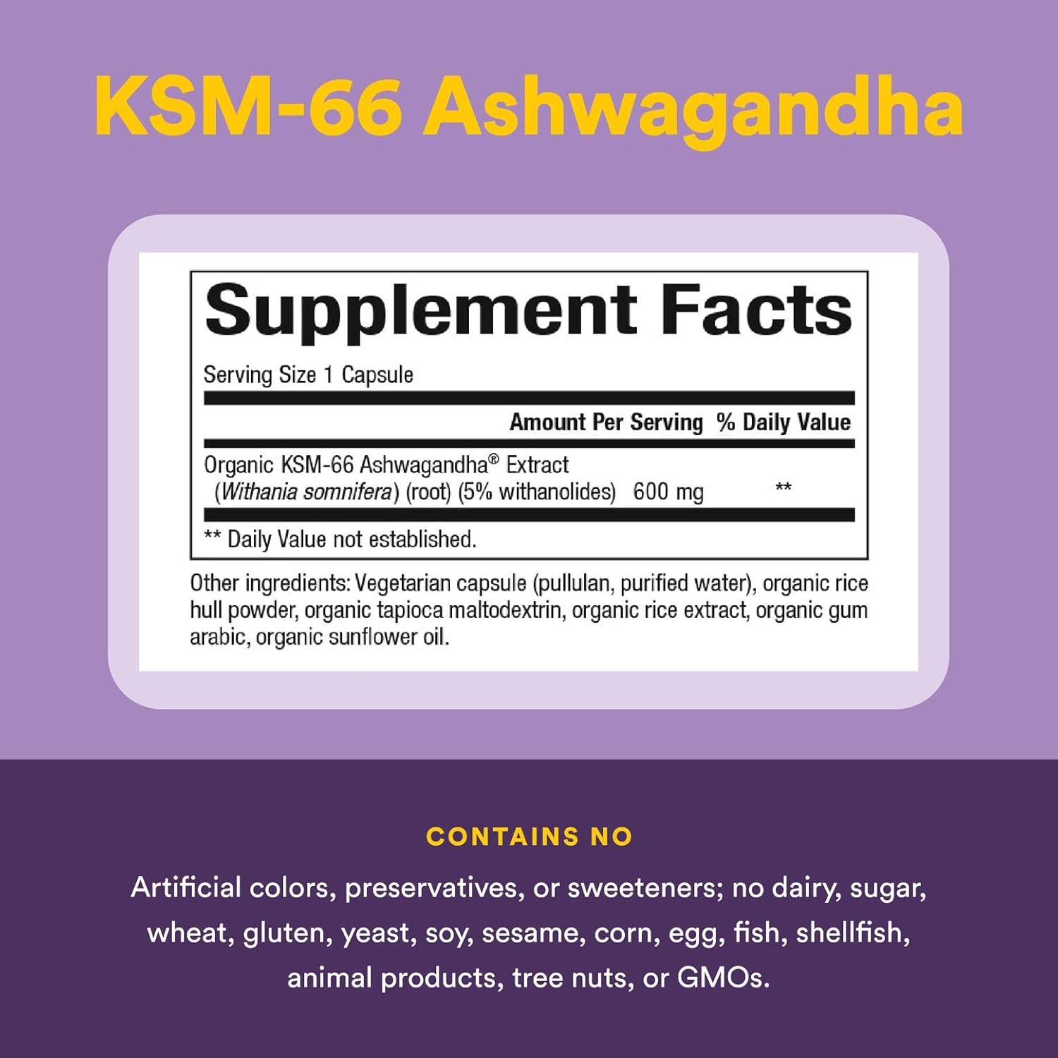 600 mg of organic KSM-66 ashwagandha root extract: Helps support your mind and body during stressful times;* Promotes focus and reaction time;* Promotes cognitive health, mood, fatigue endurance and vitality*