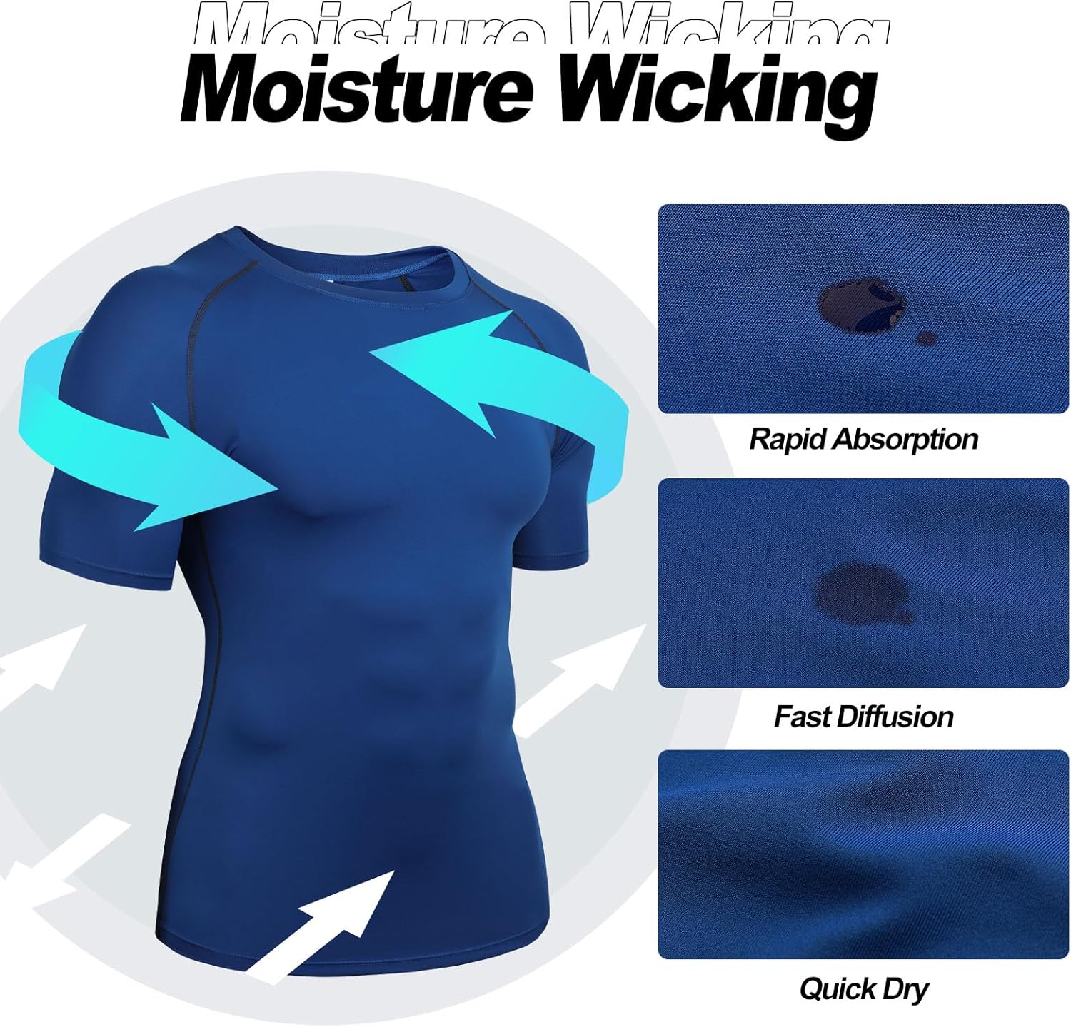 Sumolux 5 Pack Men’s Compression Shirts Short Sleeve Sports Athletic Workout Undershirt Base Layer T-Shirt Tops