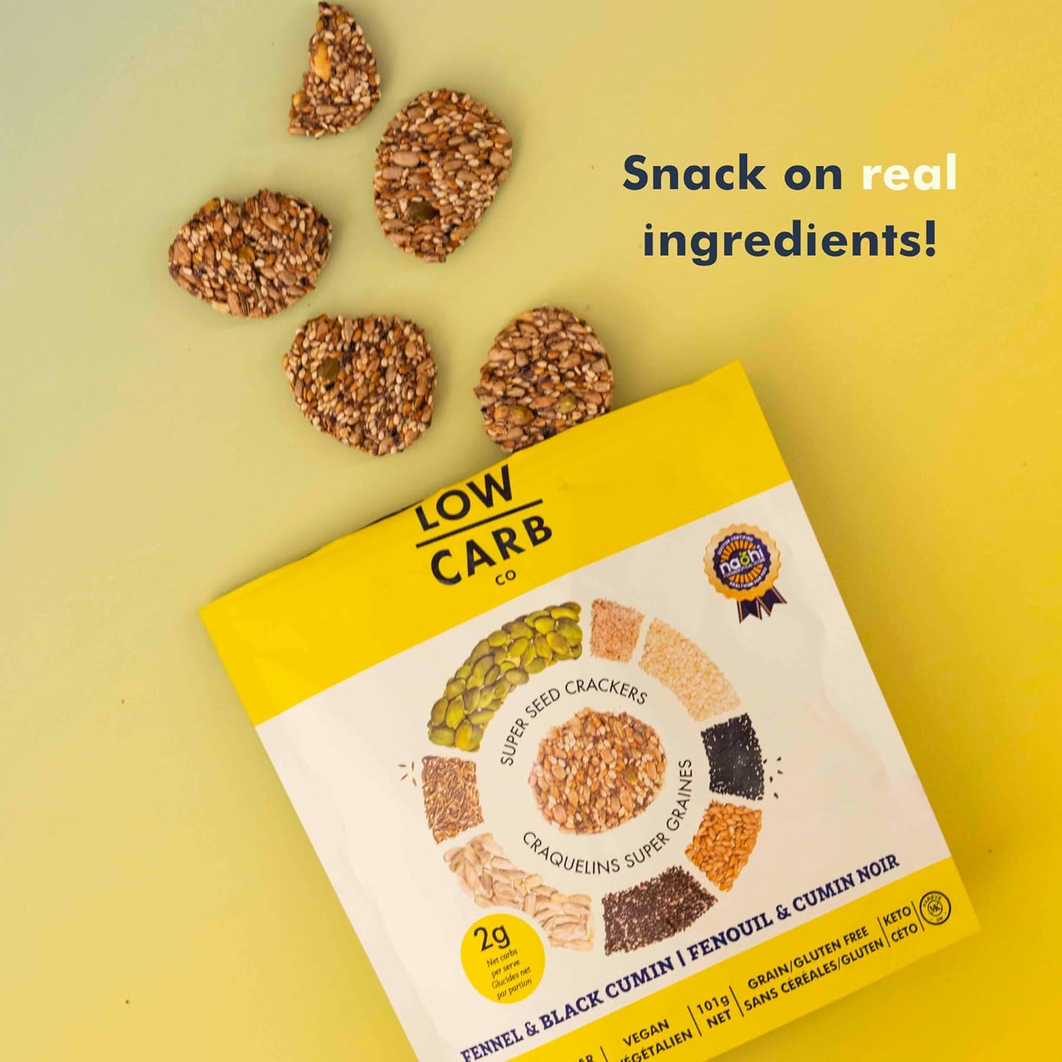 Super Seed Crackers, Gluten Free & Keto Friendly Healthy Snacks, Vegan, Zero Sugar, Paleo & Diabetic Friendly, Nut Free, 20g High Protein, 18g High Fiber, 3.56oz Each, 3-Pack, Fennel & Black Cumin