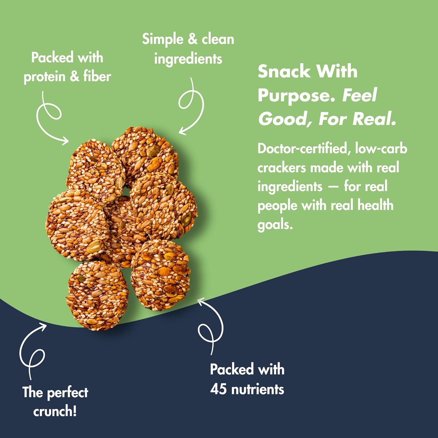 CLEAN, PLANT-BASED INGREDIENTS: Made with a wholesome mix of sunflower, sesame, chia, flax, and pumpkin seeds, plus coconut oil and psyllium husk, these 100% all-natural crackers have no sugar, seed oils, fillers, or artificial additives; just pure, crunchy nutrition in every bite