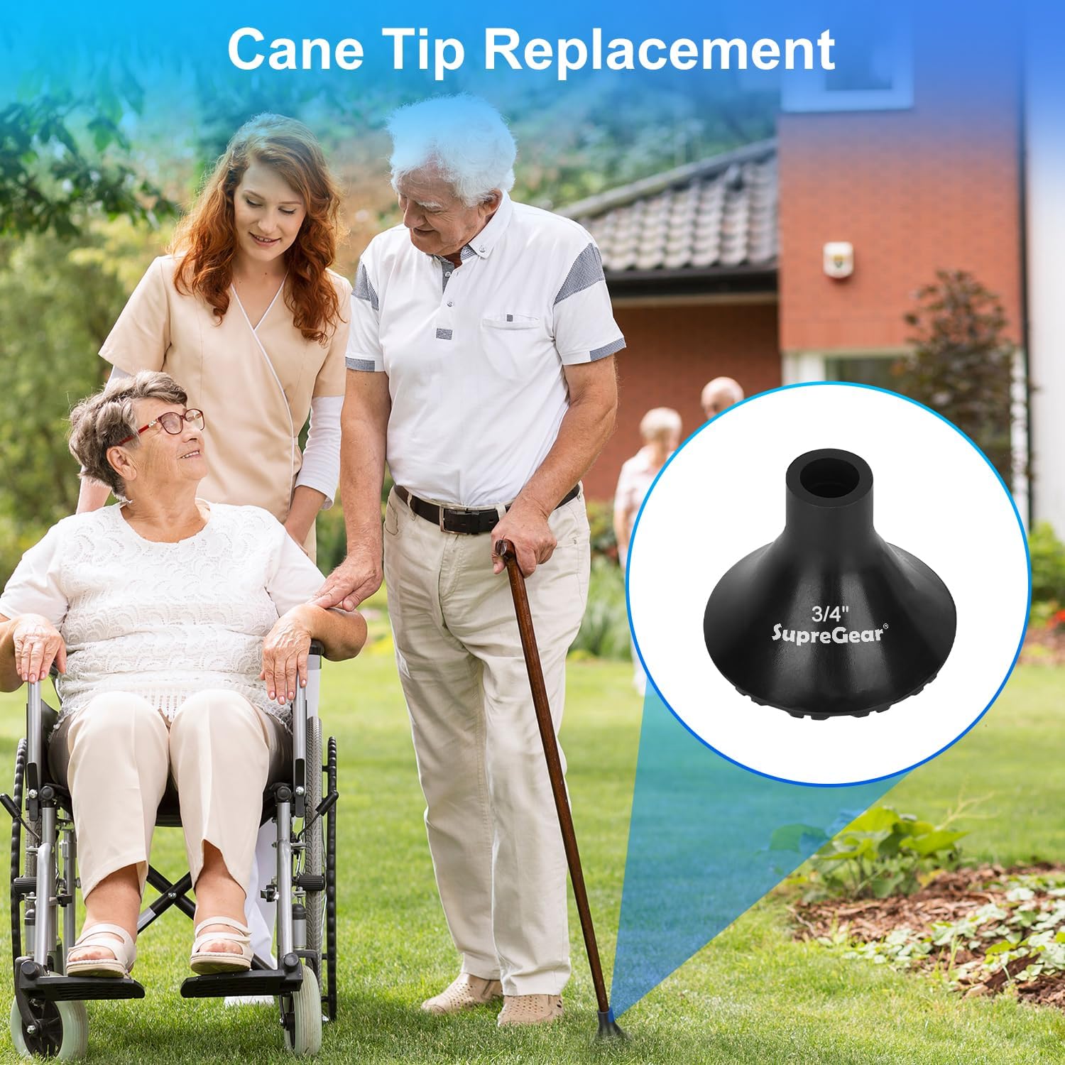 supregear Cane Tip Replacement, 3/4 Inch Extreme Grip Non-Slip Heavy Duty Rubber Cane Tips All Terrain Cane Foot Pad for Walking Cane Folding Cane Offset Quad Pod/Tripod Cane Accessory, Black
