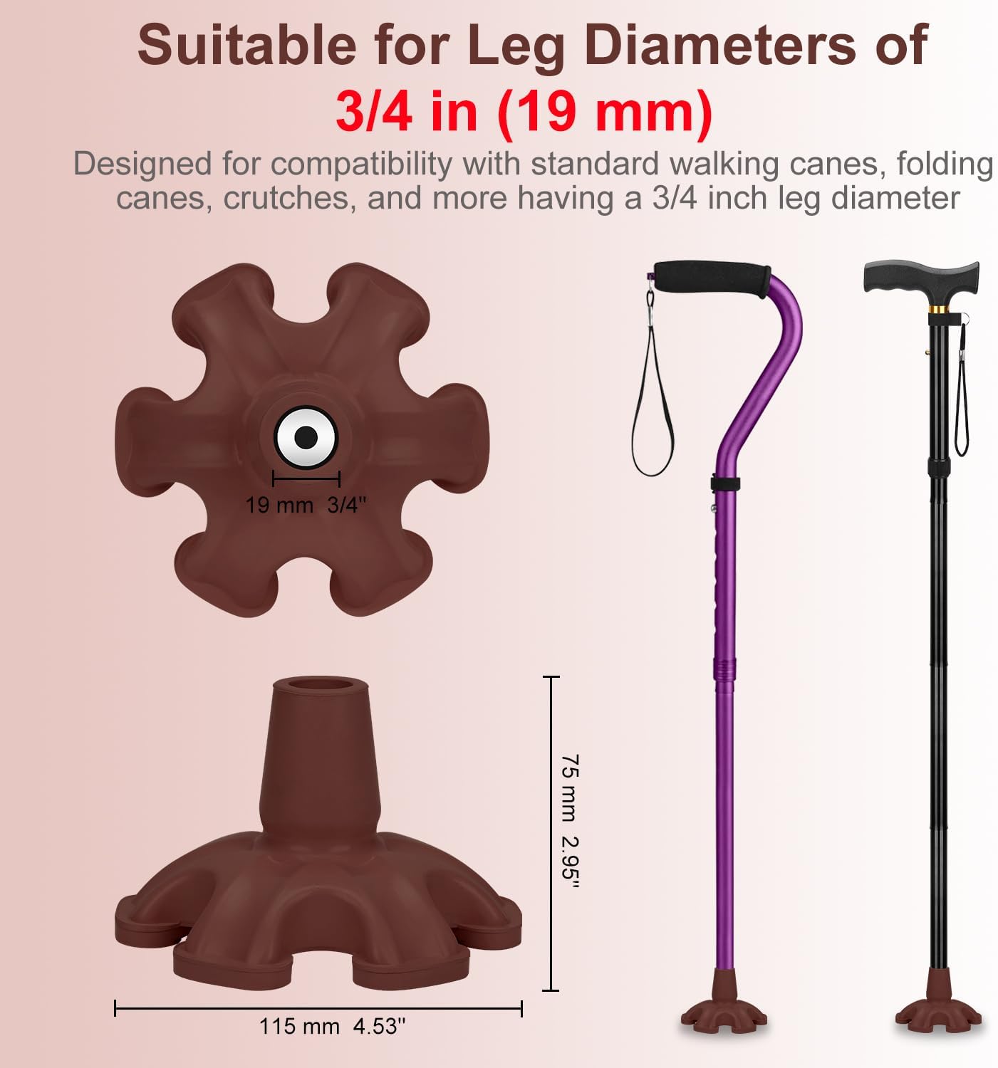 Heavy-Duty Support: 6-point rubber tip design, fits a variety of 3/4-inch walking and folding canes; provides increased grip and reduces hand tremors during use, for a comfortable cane experience