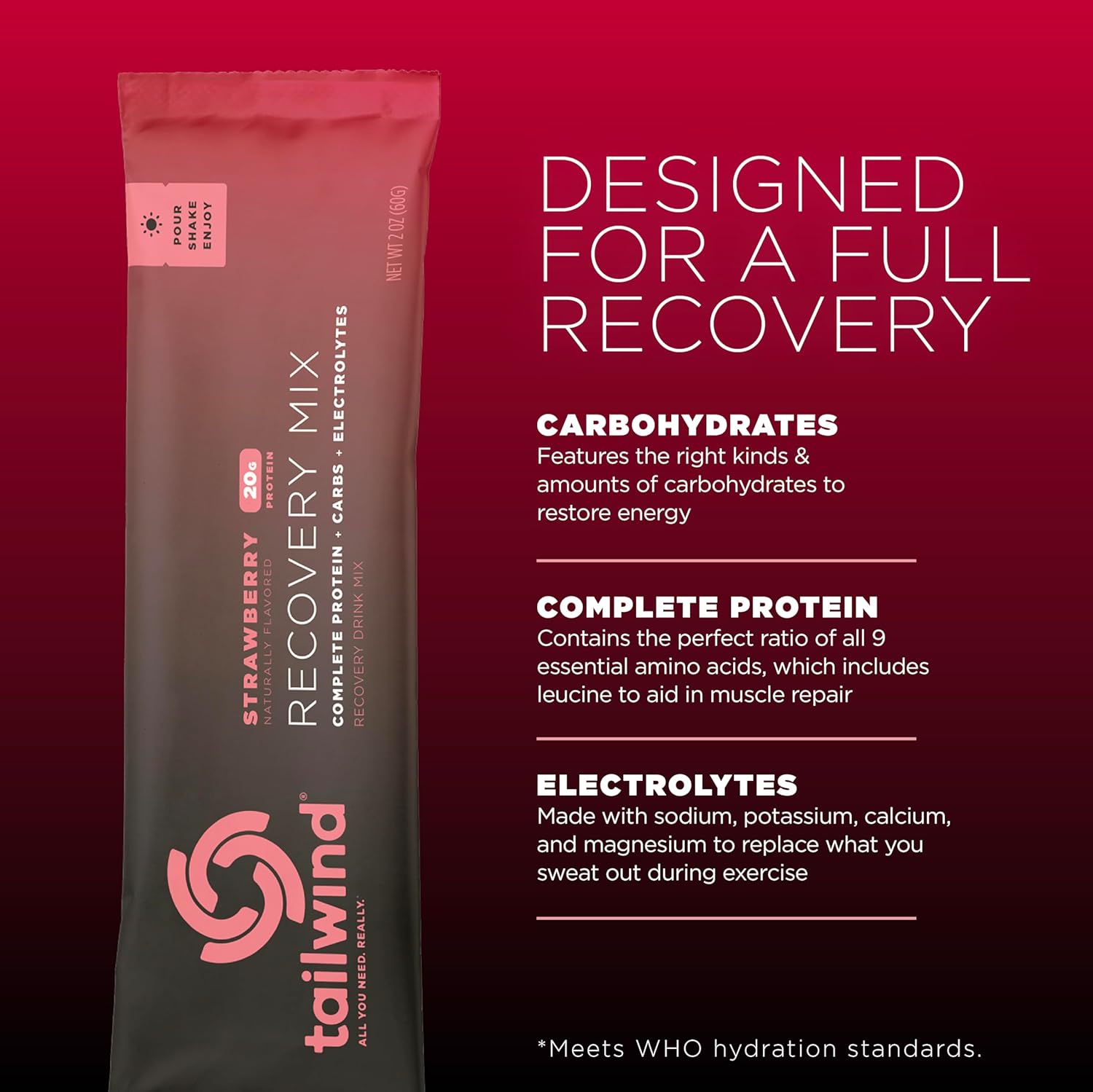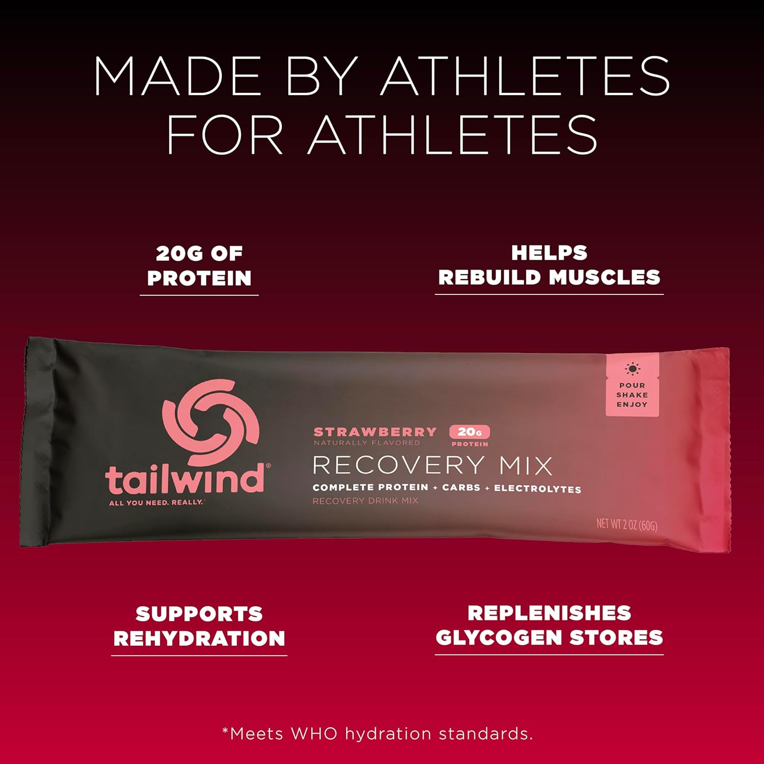 Tailwind Nutrition Recovery Mix, 20 Grams Complete Protein, Carbohydrates, and Electrolytes Powder Drink Mix for Post-Workout, Free of Gluten, Soy, and Dairy, Vegan, 12 Servings, Strawberry