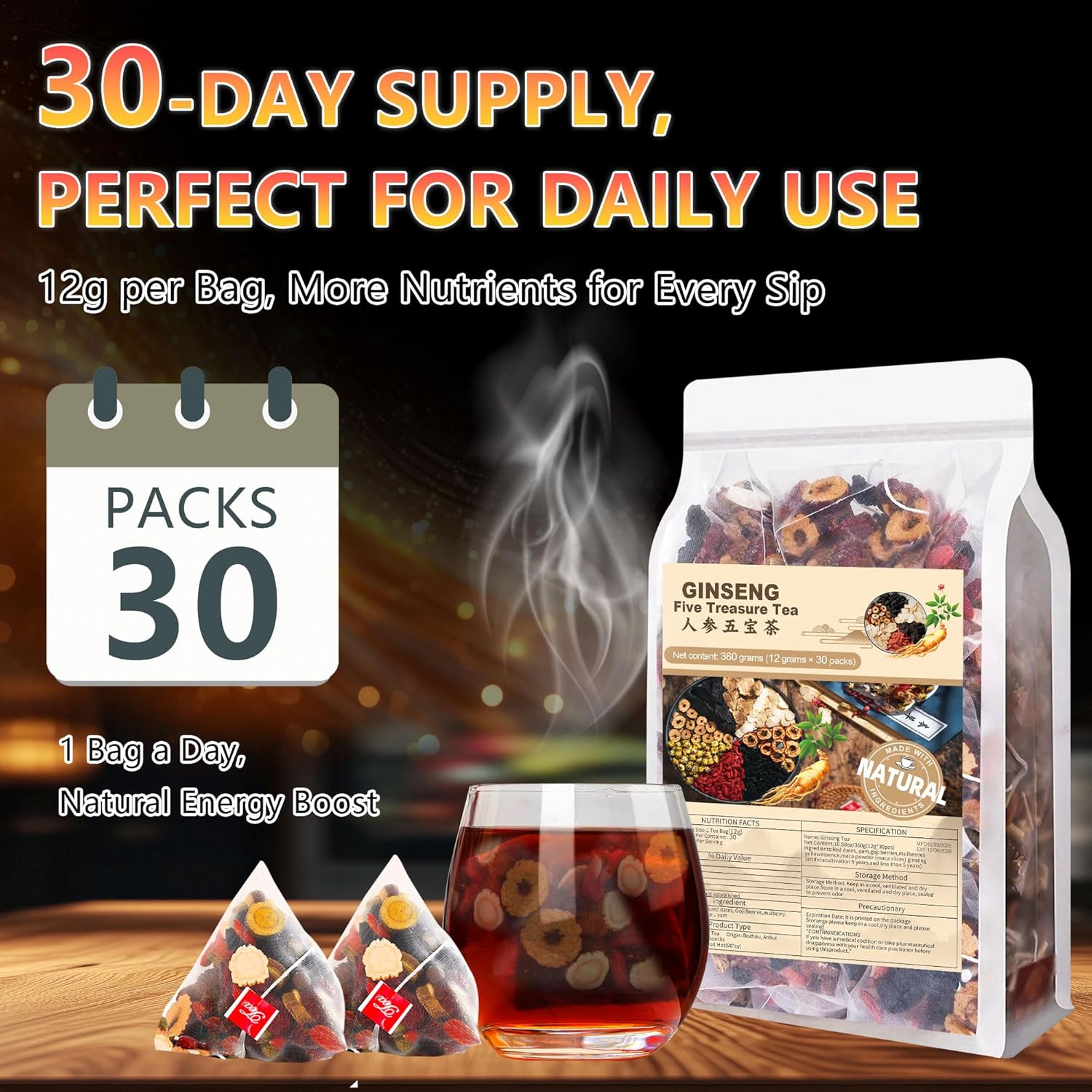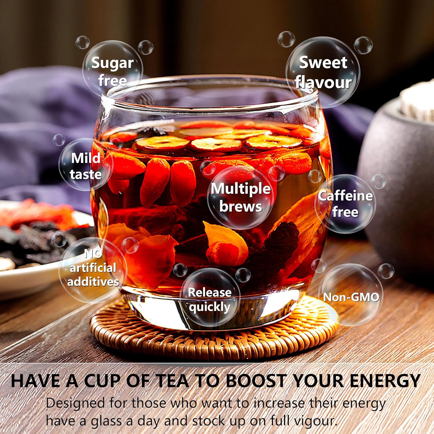 All Natural Kidney Cleanse Detox and Repair Formula: Our Five Treasure Tea is crafted with a time-tested kidney tea formula ginseng six treasure tea, designed to naturally support kidney cleanse detox and repair. This herbal tea blend includes ginseng, goji berries, and red dates, known to promote urinary health and balance your body’s internal systems.