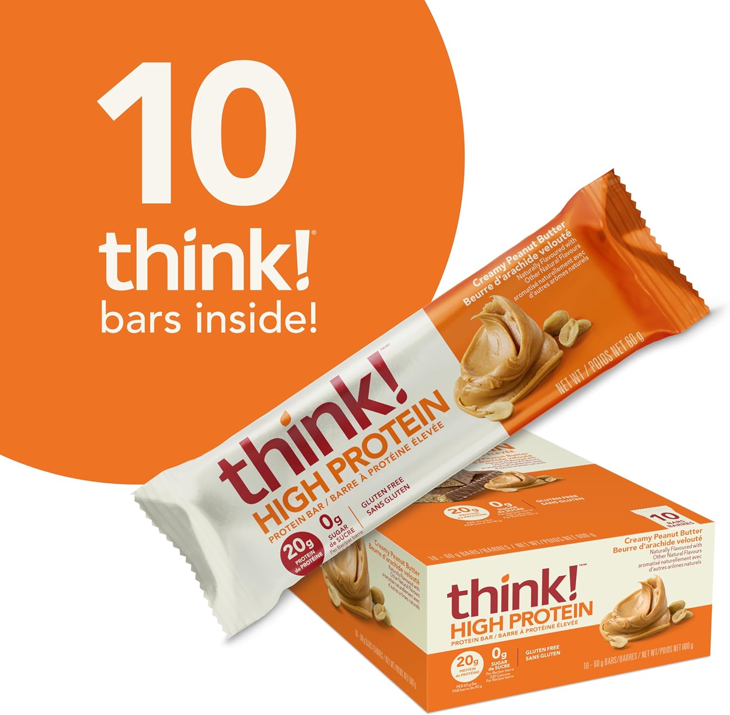 Includes 10 think! Creamy Peanut Butter bars.