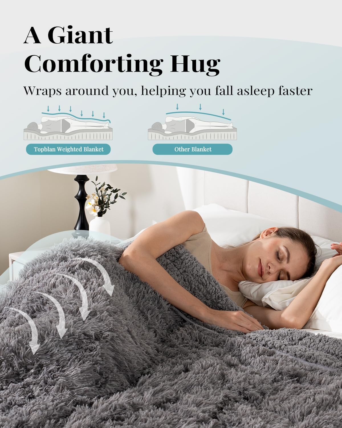 Rest in Cloud: Topblan faux fur weighted blanket enables you to bundle up in smoothness and fluffiness at the same time thanks to its 1.57 inches 260 GSM plush fleece top and 220 GSM shaggy Sherpa reverse, which are made with premium material in case of any shedding or pilling.