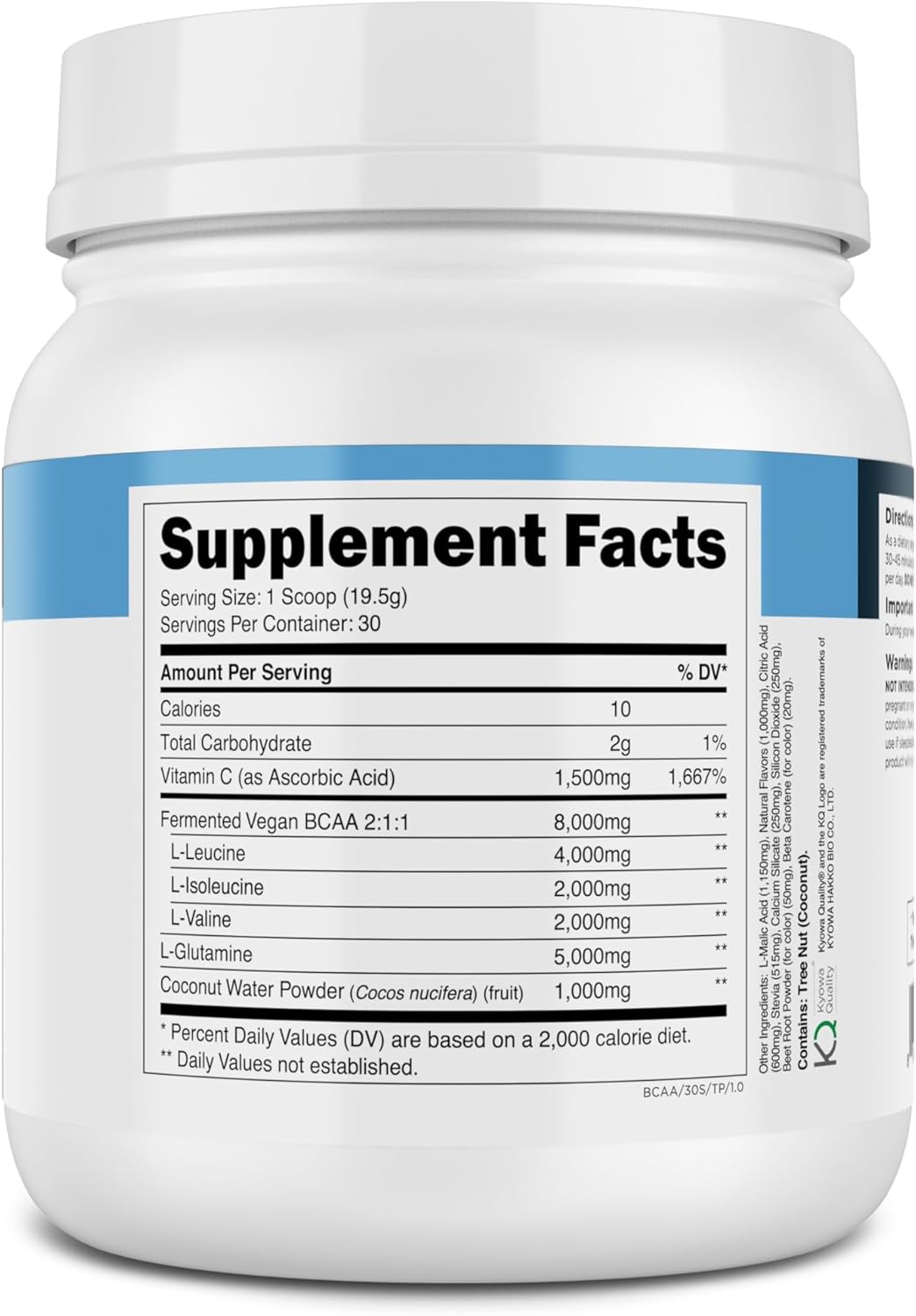 Enhanced Hydration and Recovery: With 1,000 mg of coconut water powder per serving, our BCAA Glutamine formula supports optimal hydration and electrolyte balance. This helps you stay hydrated and recover faster, allowing you to push through intense workouts and maintain peak performance.