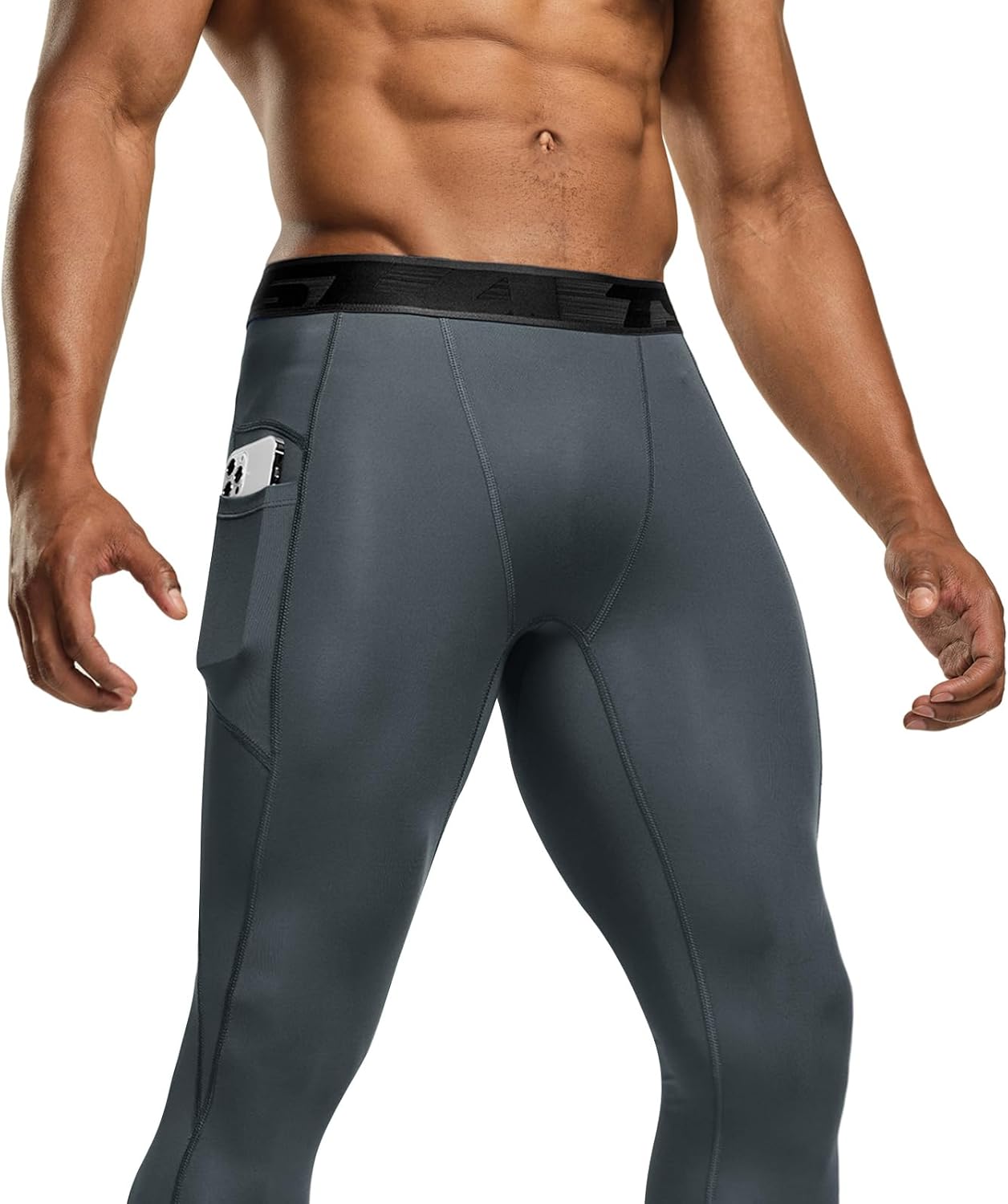 TSLA Men’s Compression Pants, Cool Dry Athletic Workout Running Leggings Tights with Pockets