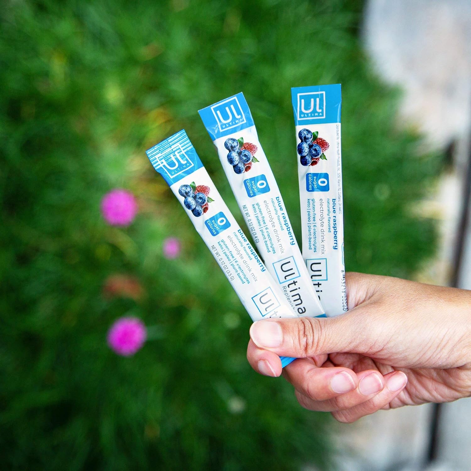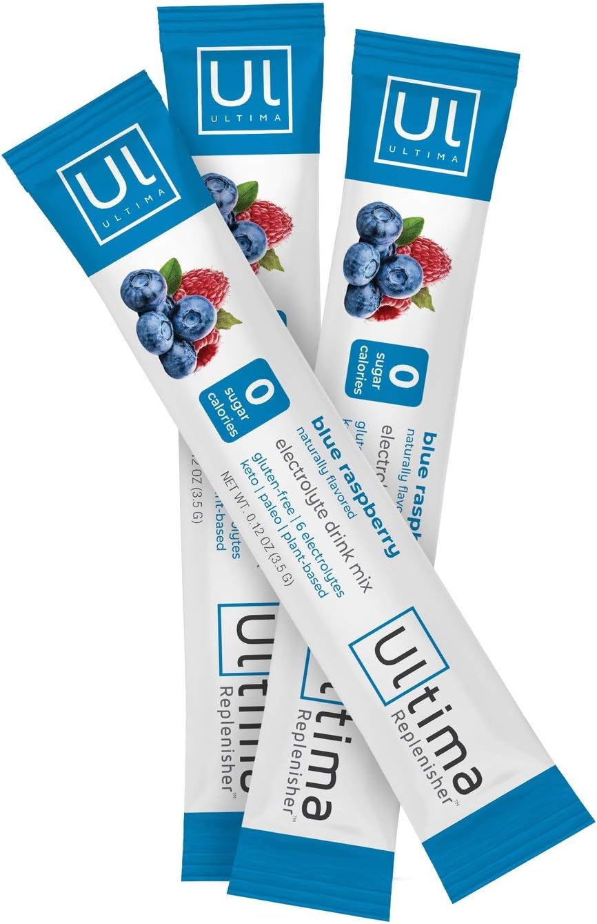 Ultima Replenisher Electrolyte Hydration Drink Mix, Blue Raspberry, 20 Serving Stickpack Box – Sugar Free, 0 Calories, 0 Carbs – Gluten-Free, Keto, Non-GMO, Vegan, with Magnesium, Potassium, Calcium