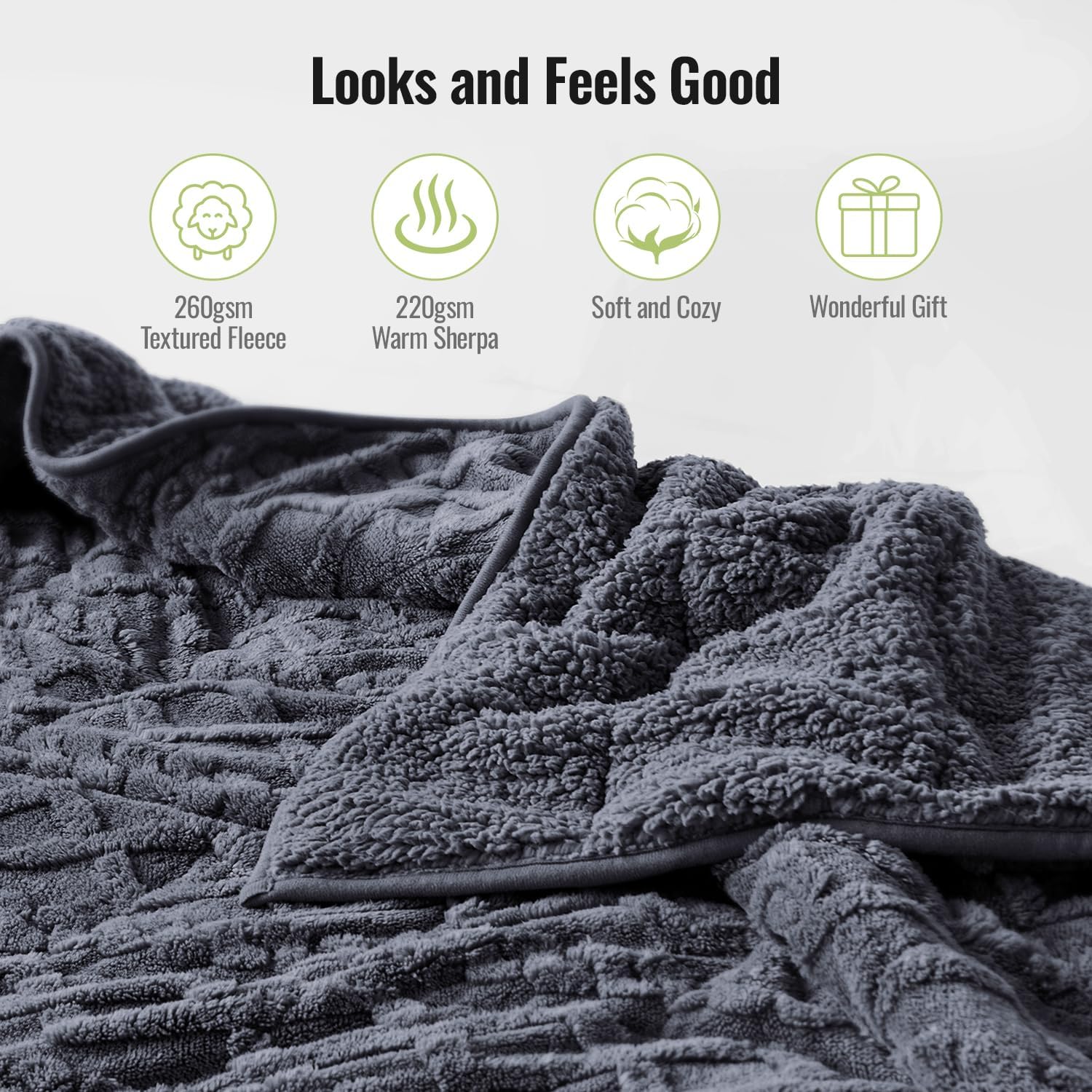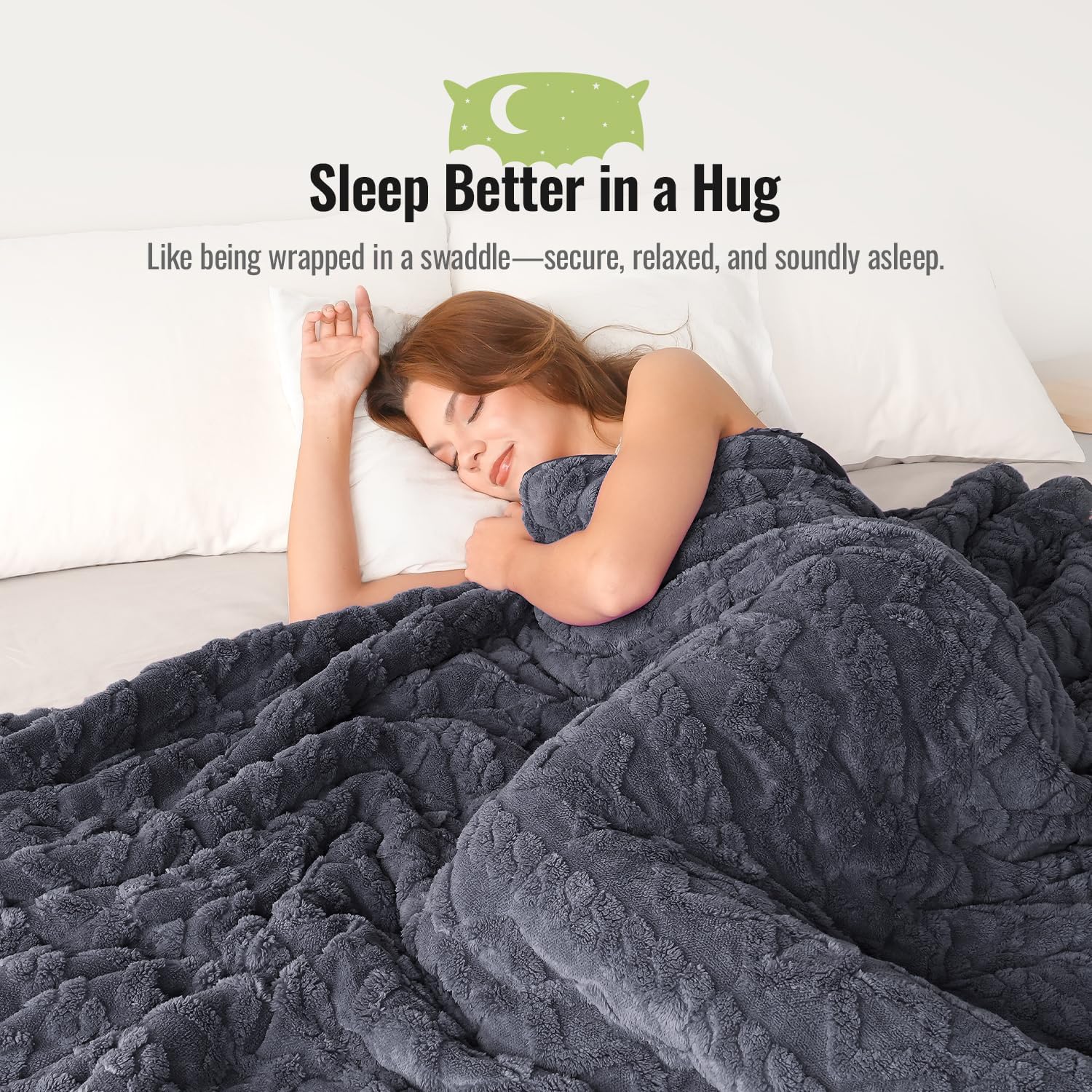 Deluxe Finish: This queen size weighted blanket 15 pounds is made of sherpa on both sides. Featuring a tufted cable pattern on the top and a grid design on the reverse, this heavy weighted blanket is excellent addition to your home decor for luxurious ambiance creation, turning your space into a cozy and classy sanctuary. Crafted to be large and fluffy, it is resistant to pilling, fading, and stains