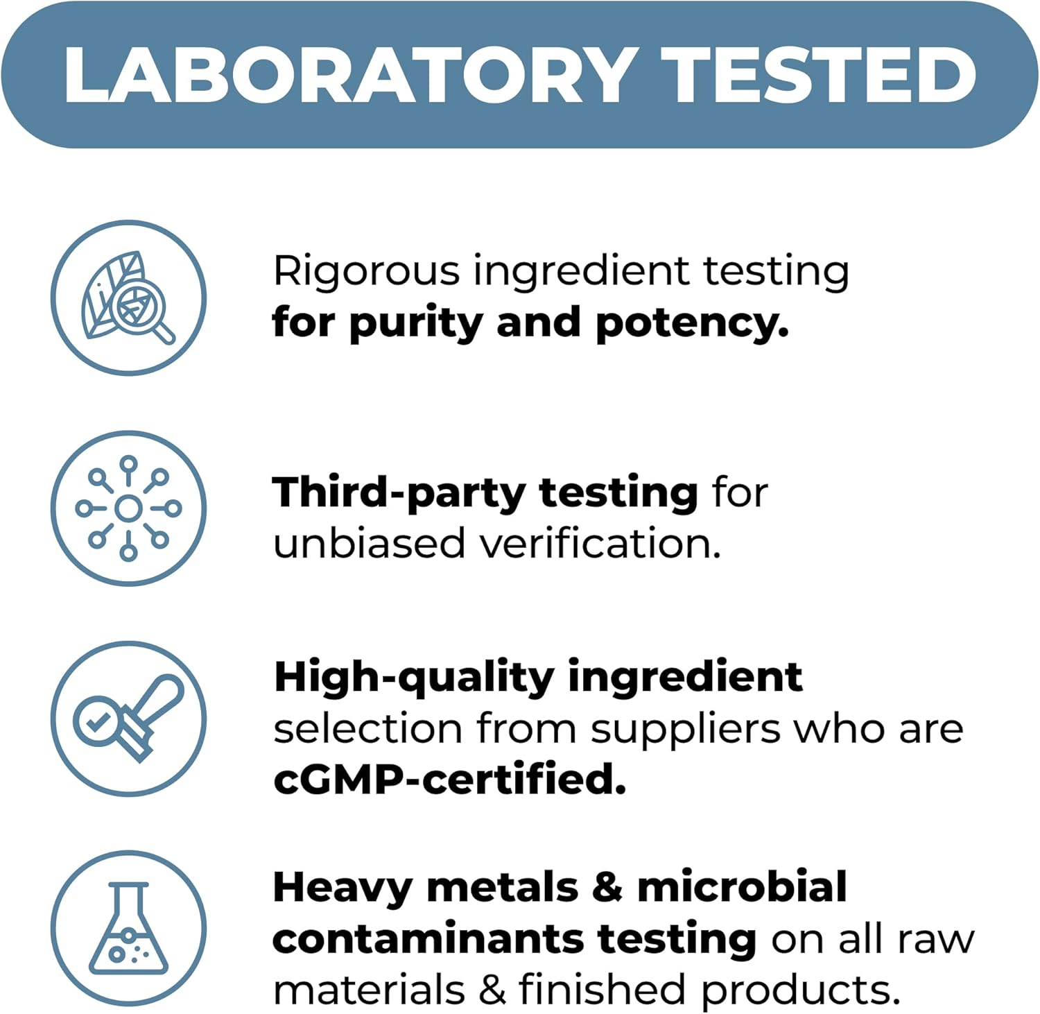 We conduct thorough quality tests during production to ensure each product’s purity and potency. Ingredients are chosen only from suppliers adhering to Stringent Industry Standards and cGMP.