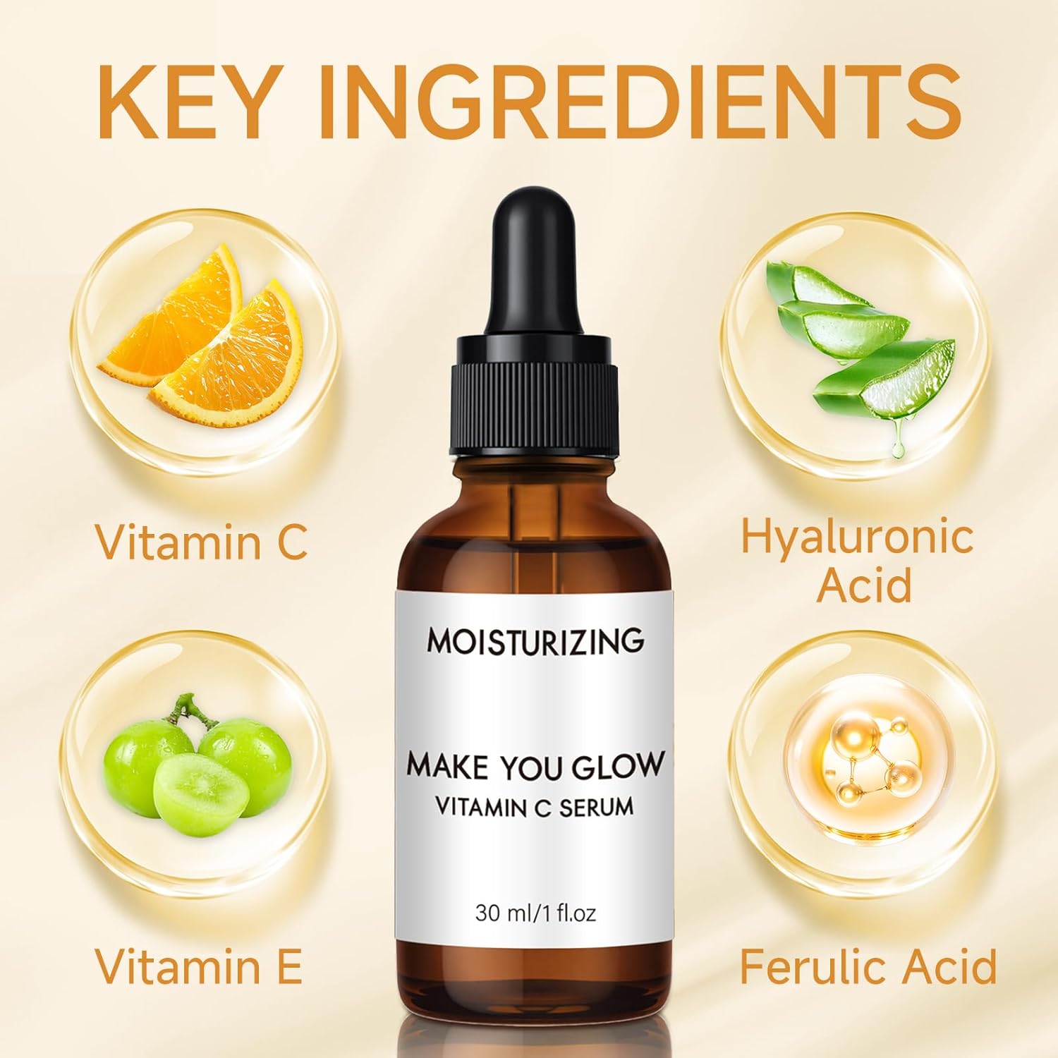 High-Power Ingredients : Featuring vitamins C and E, ferulic acid, and sodium hyaluronate, this vitamin c serum for face strengthen and protect your skin with nourishing formula, reduce fine lines and wrinkles.