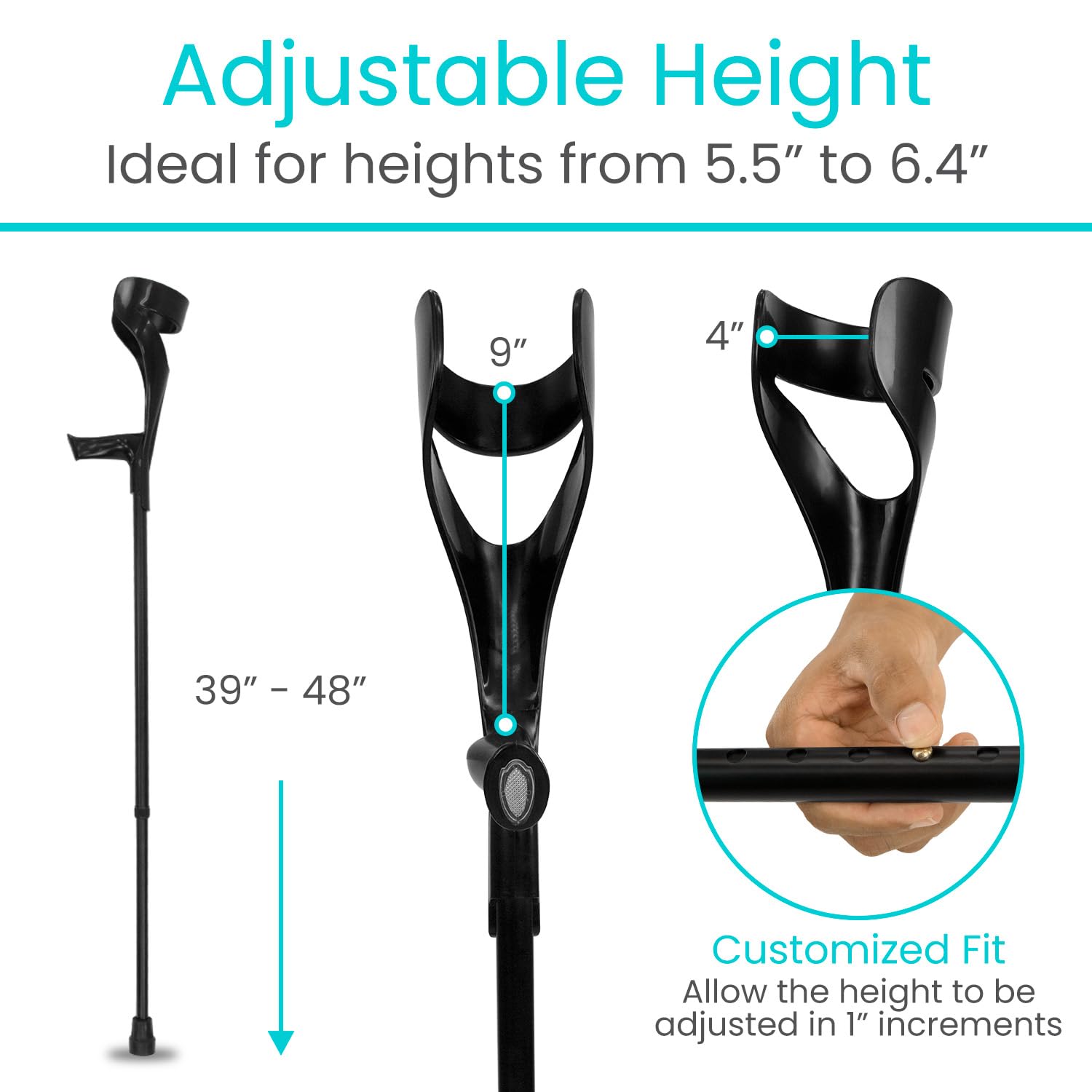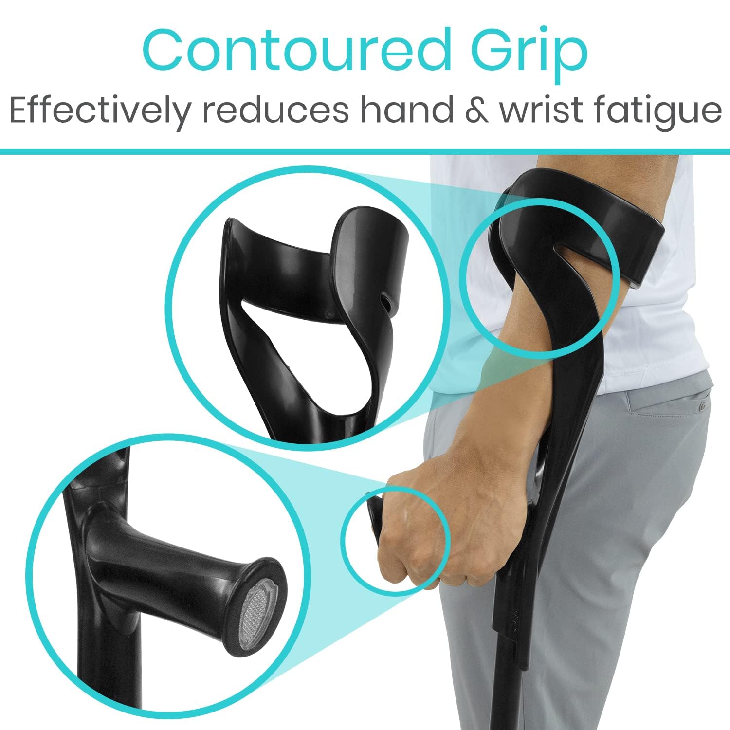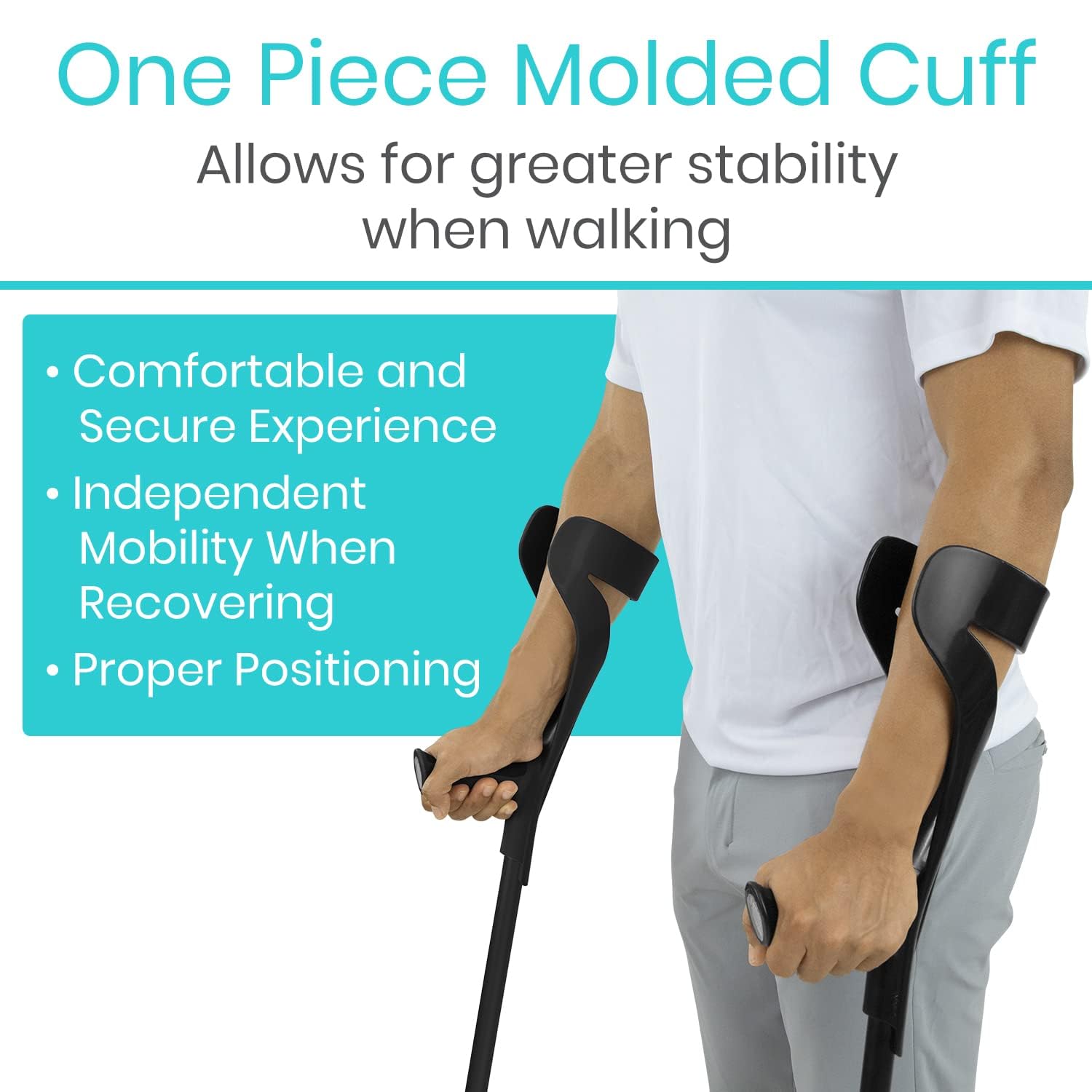 Vive Forearm Crutches (Pair) – Adjustable, Lightweight Arm Crutches Forearm for Adults – Ergonomic Arm Crutch Cuff and Comfortable Handles – Heavy Duty Crutches Non Slip Skid Replaceable Rubber Tips