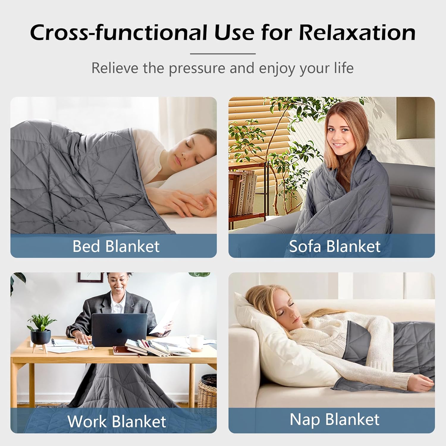 Adult-Focused Design: Experience unparalleled relaxation with our weighted blankets, designed specifically for adults seeking the ultimate comfort in their sleep environment.
