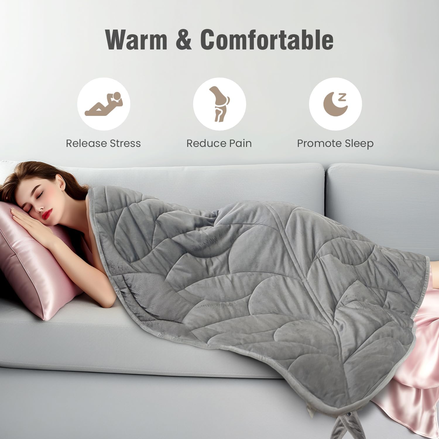 Portable Travel: This travel weighted blanket comes in chic colors and comes with a sophisticated storage box and carry bag. The easy-to-roll-up design makes for easy storage. It’s perfect for use on airplanes, in the office, and on the go