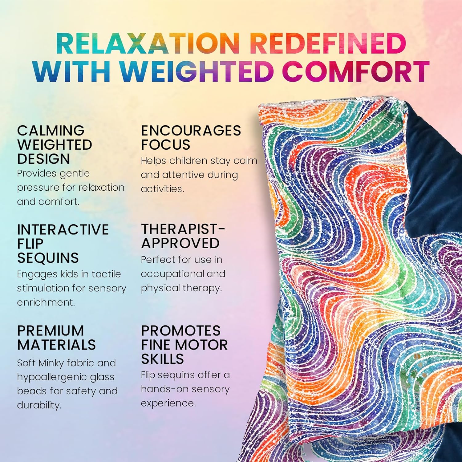 Weighted Lap Pad for Kids – 20”x17”, 5lbs – Sequin Sensory Blanket for Tactile Stimulation – Calming Aid & Autism Sensory Tool