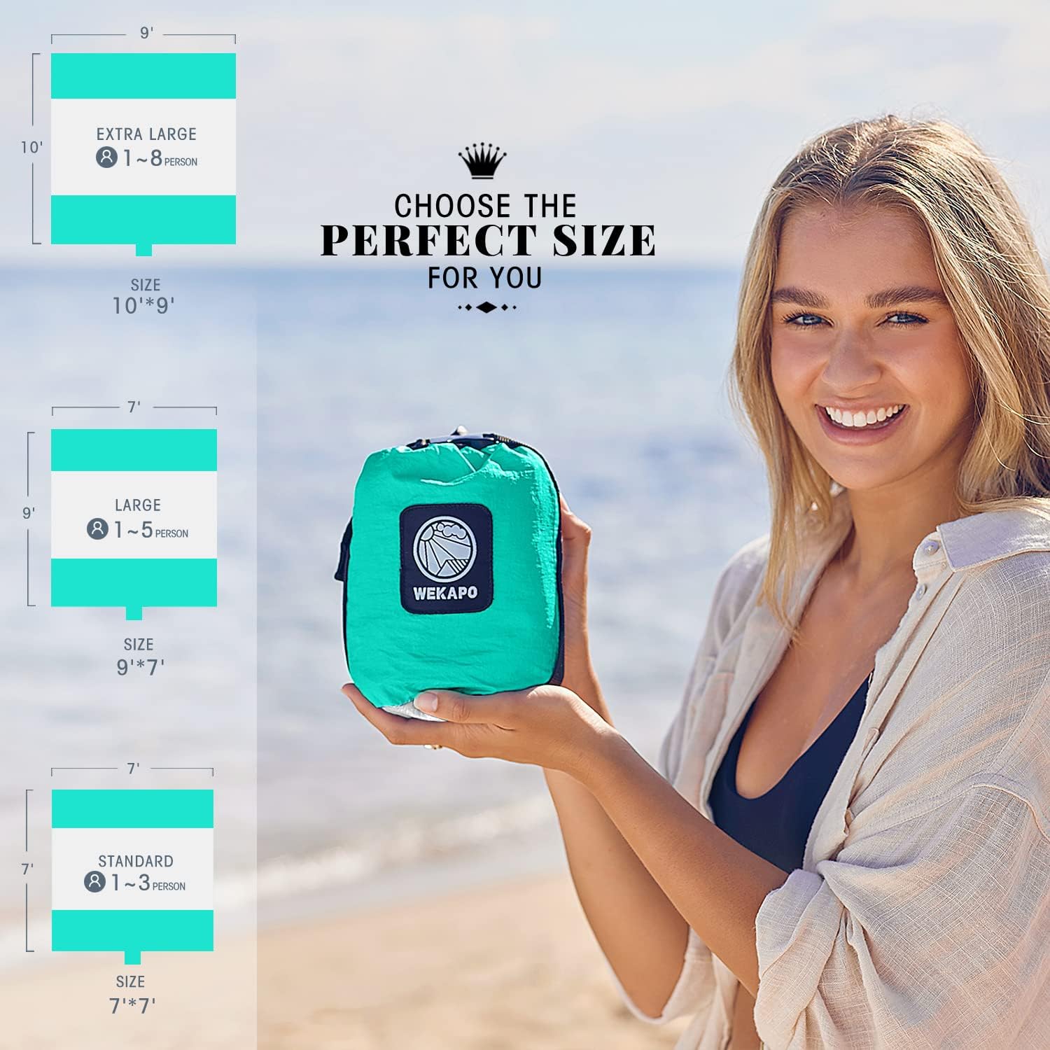 WEKAPO Beach Blanket Sandproof Waterproof, Extra Large Beach Mat, Oversized & Compact Sand Free Mat Quick Drying, Lightweight & Durable with Stakes & Corner Pockets