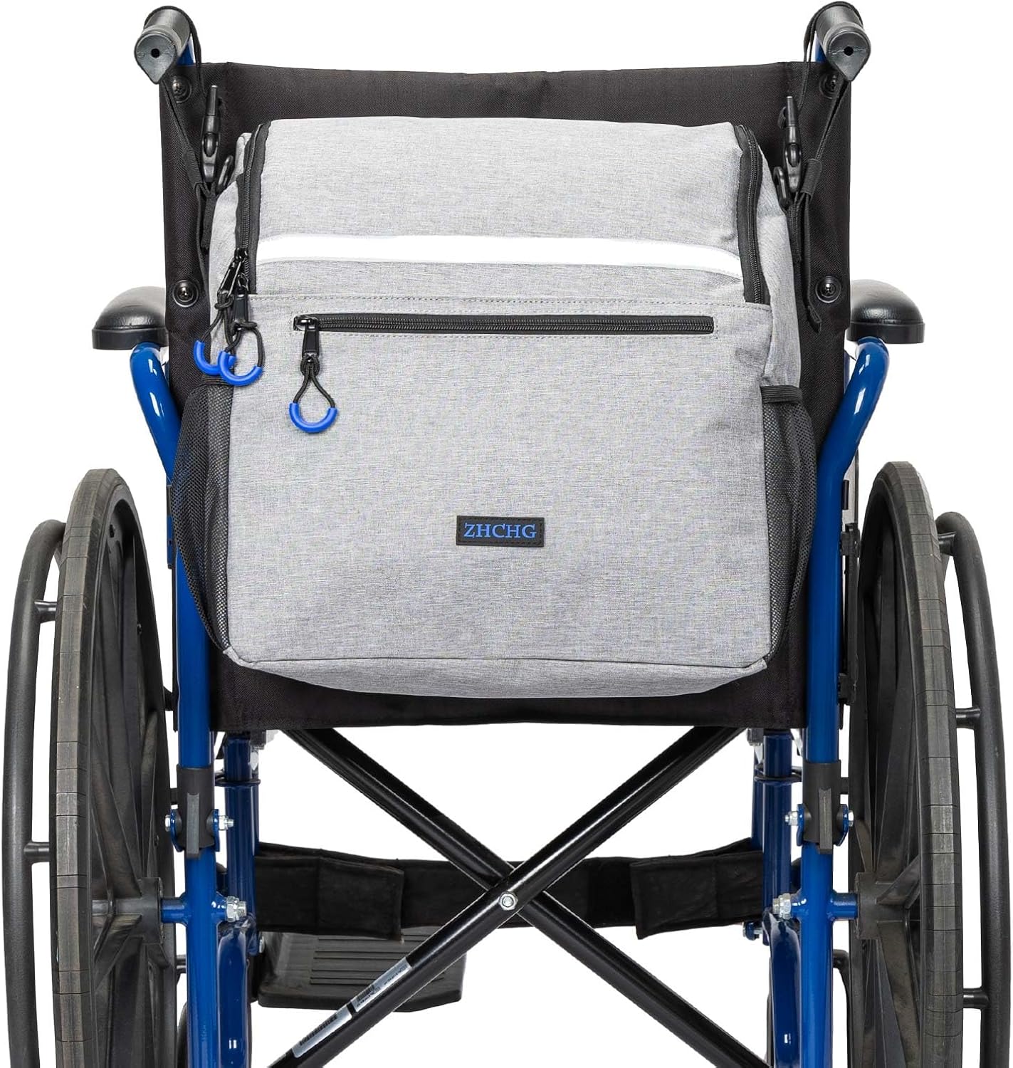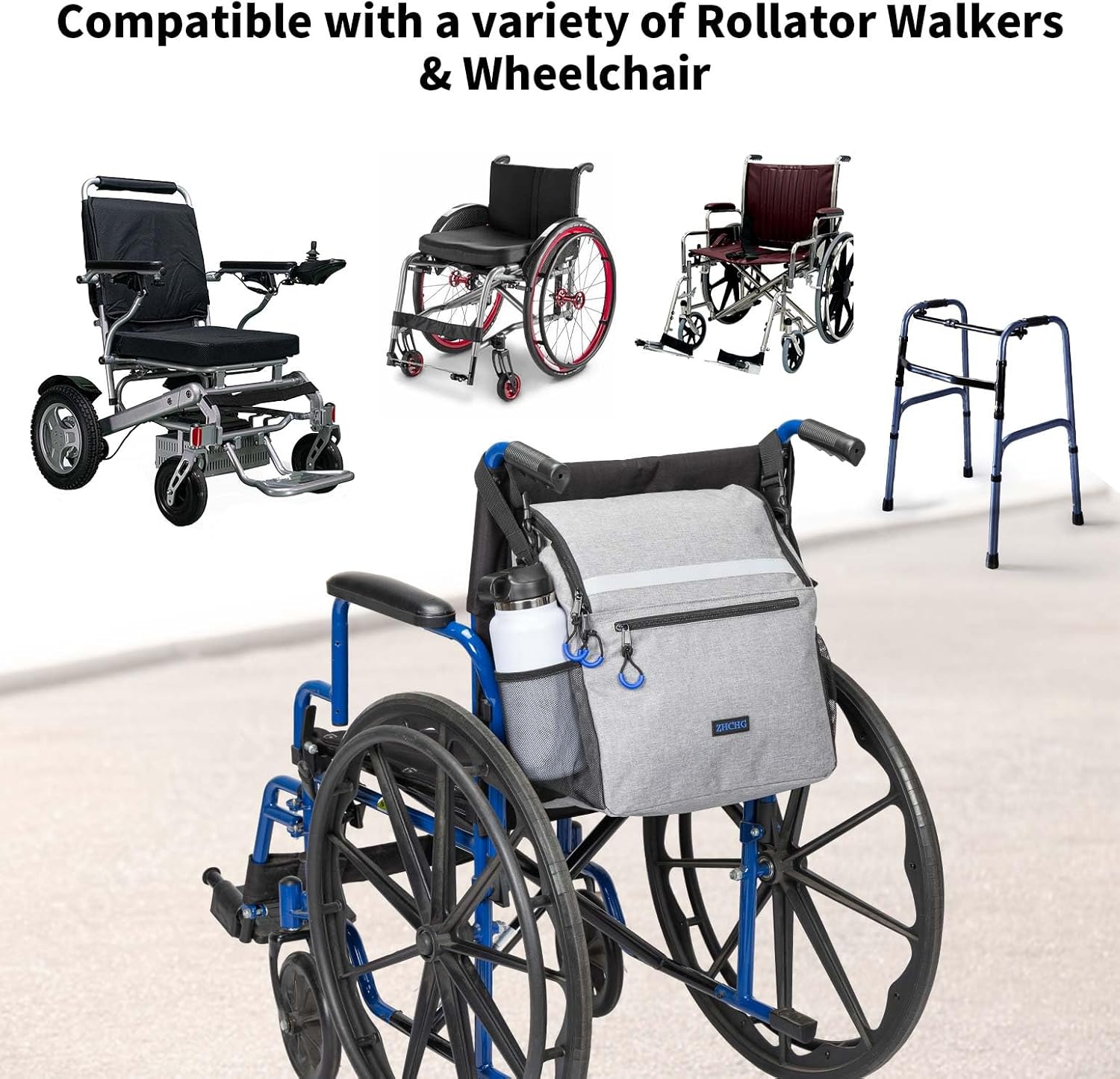 Wheelchair Bags, Wheelchair Backpack with Cup Holder, Wheelchair Bags to Hang on Back, Electric Wheel Chair Accessories, Large Storage Bag for Walker Rollator (Gray)
