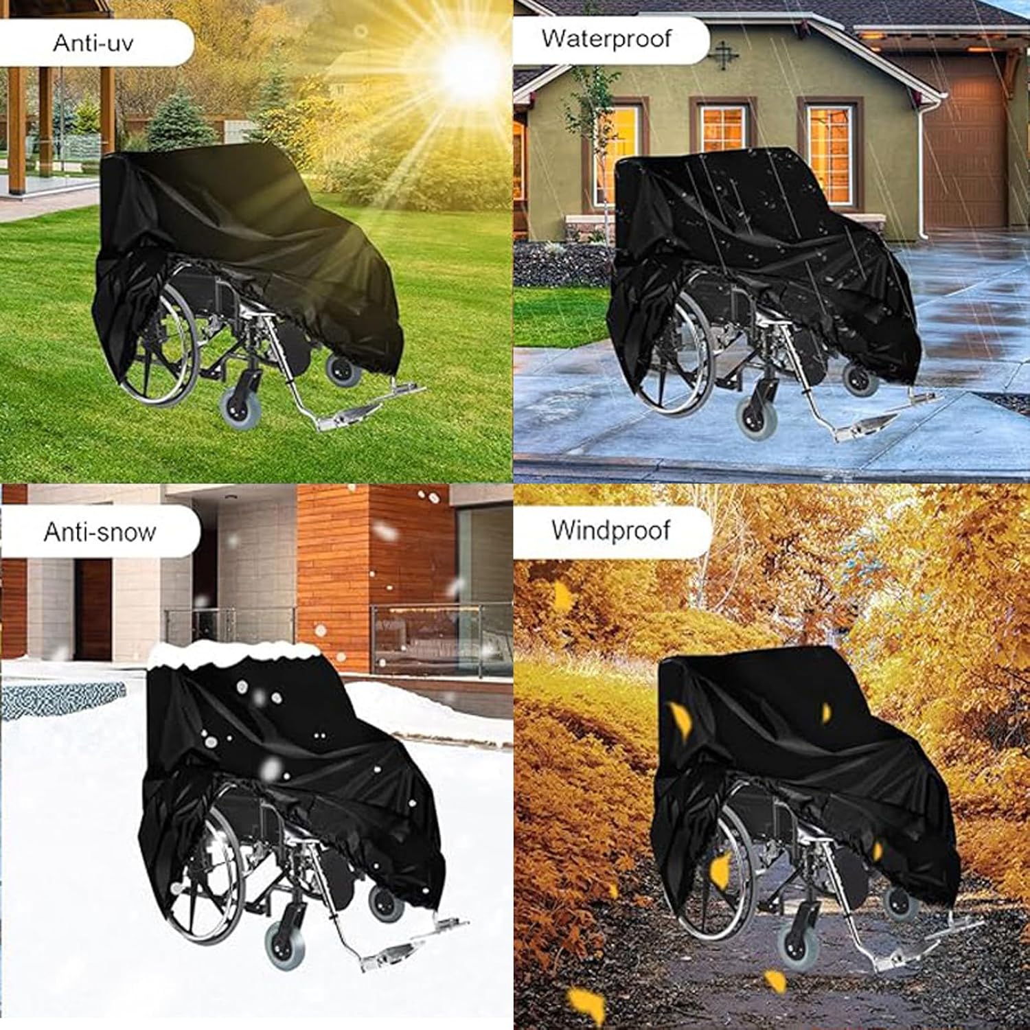 HIGH QUALITY MATERIALS: Made of durable 210D Oxford fabric, our wheelchair cover will not shrink or stretch, which is tear resistant and fade resistant, protects against dust, snow, dirt, rain, and is resistant to sunlight, which can effectively protect your wheelchair from sunlight aging.