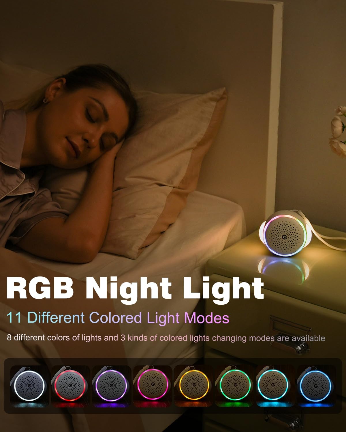 11 Different Colored Light Modes:White noise sound machine with 8 different colors of lights and 3 kinds of colored lights changing modes are available,it always meets your personal preferences and creates your perfect atmosphere for sleep and relaxation