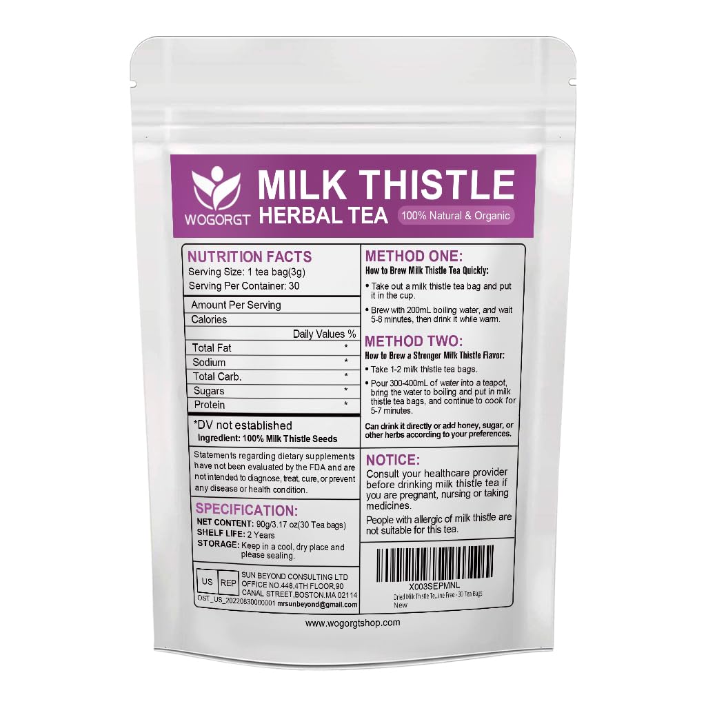 WOGORGT Dried Milk Thistle Tea – Organic Milk Thistle Herbal Tea for Liver Cleanse, Antioxidant and Immune Support, Caffeine Free – 30 Tea Bags