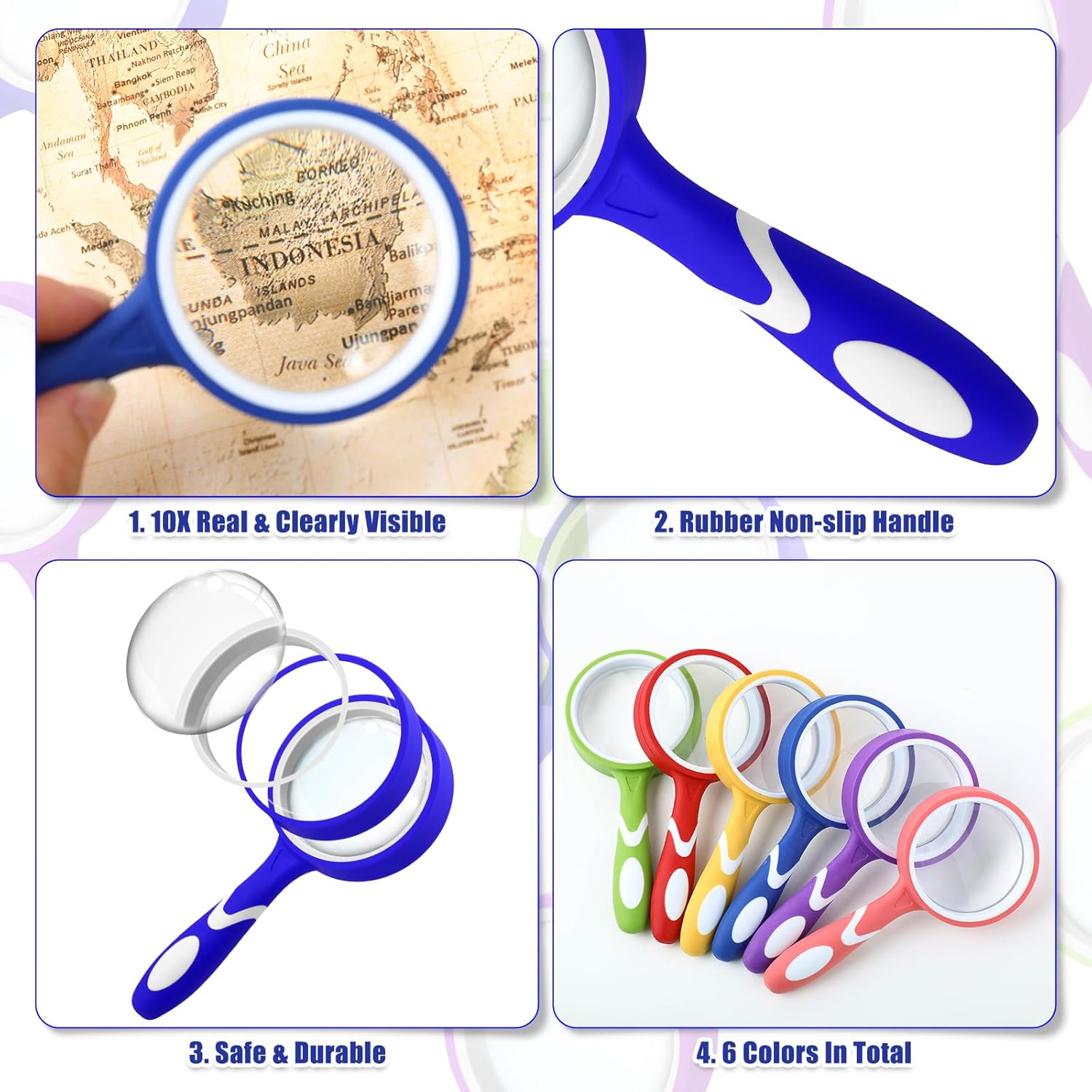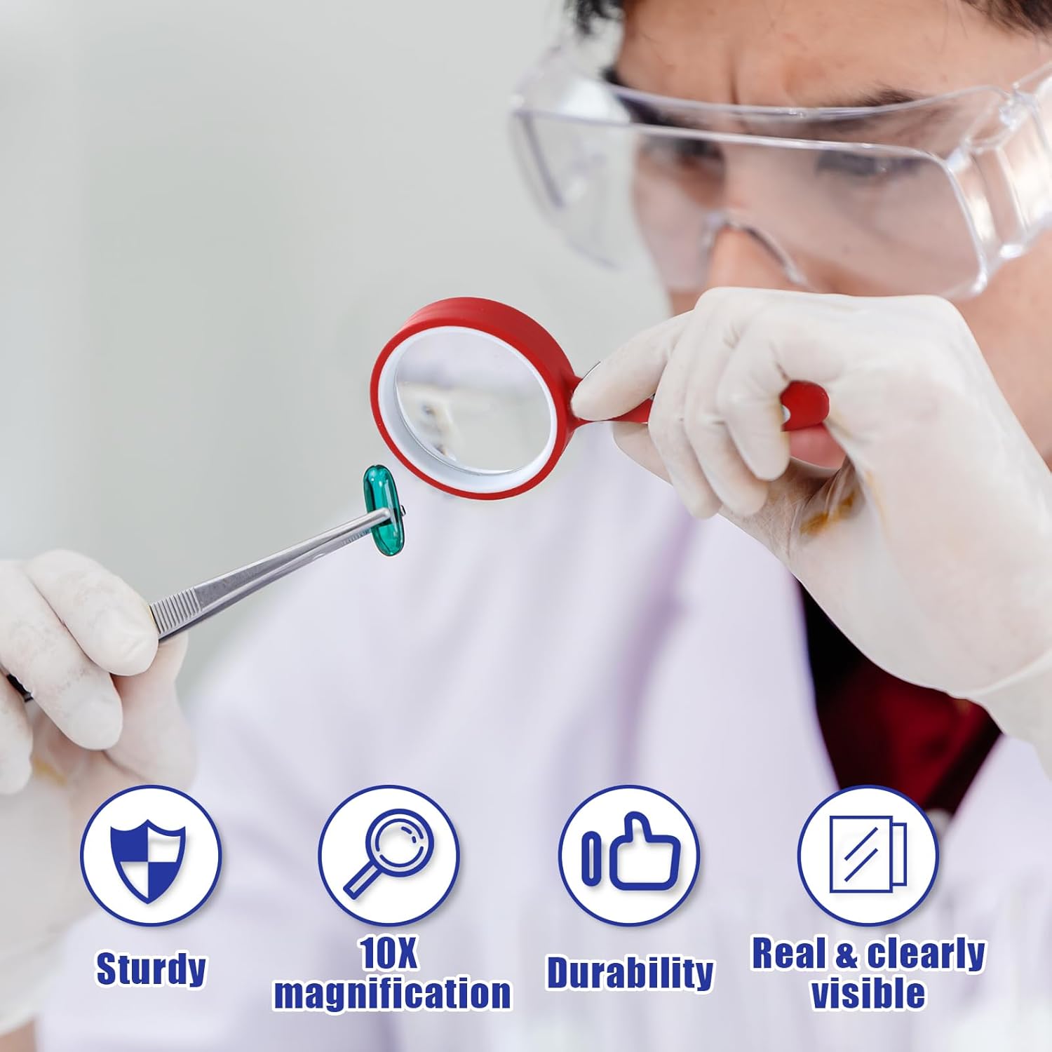 Xuhal 10X Magnifying Glass Handheld Shatterproof Reading Magnifier for Seniors and Kids, 50mm Colored Magnifying Lens with Non Slip Rubber for Observation Exploration Science (Bright Color,24 Pcs)