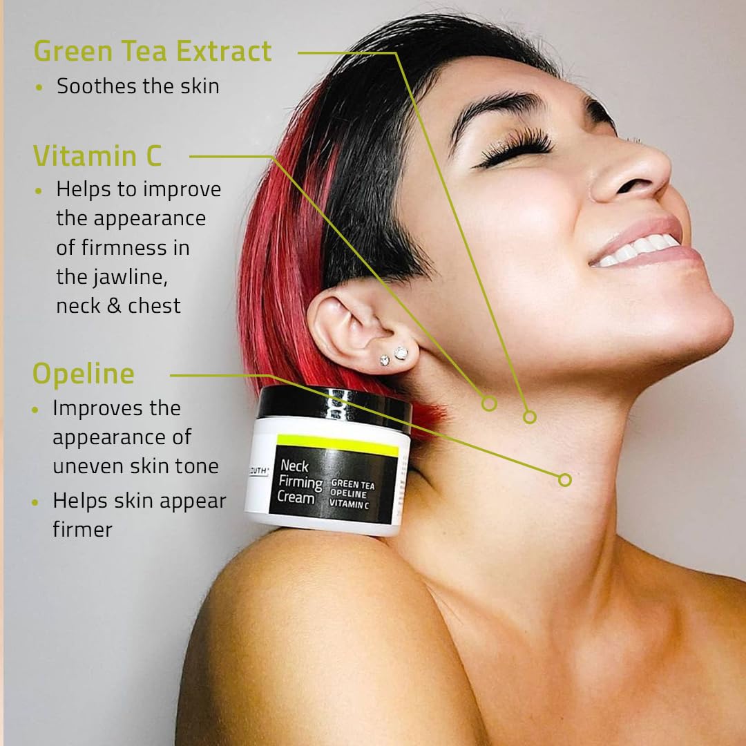 YEOUTH Neck, decolletage and face cream with Opeline, Green Tea, and Vitamin C cream. Neck and chest firming cream is owned by a Cosmetic Chemist. Paraben-free. Dermatology Tested. All your skin needs from our fountain of YEOUTH!