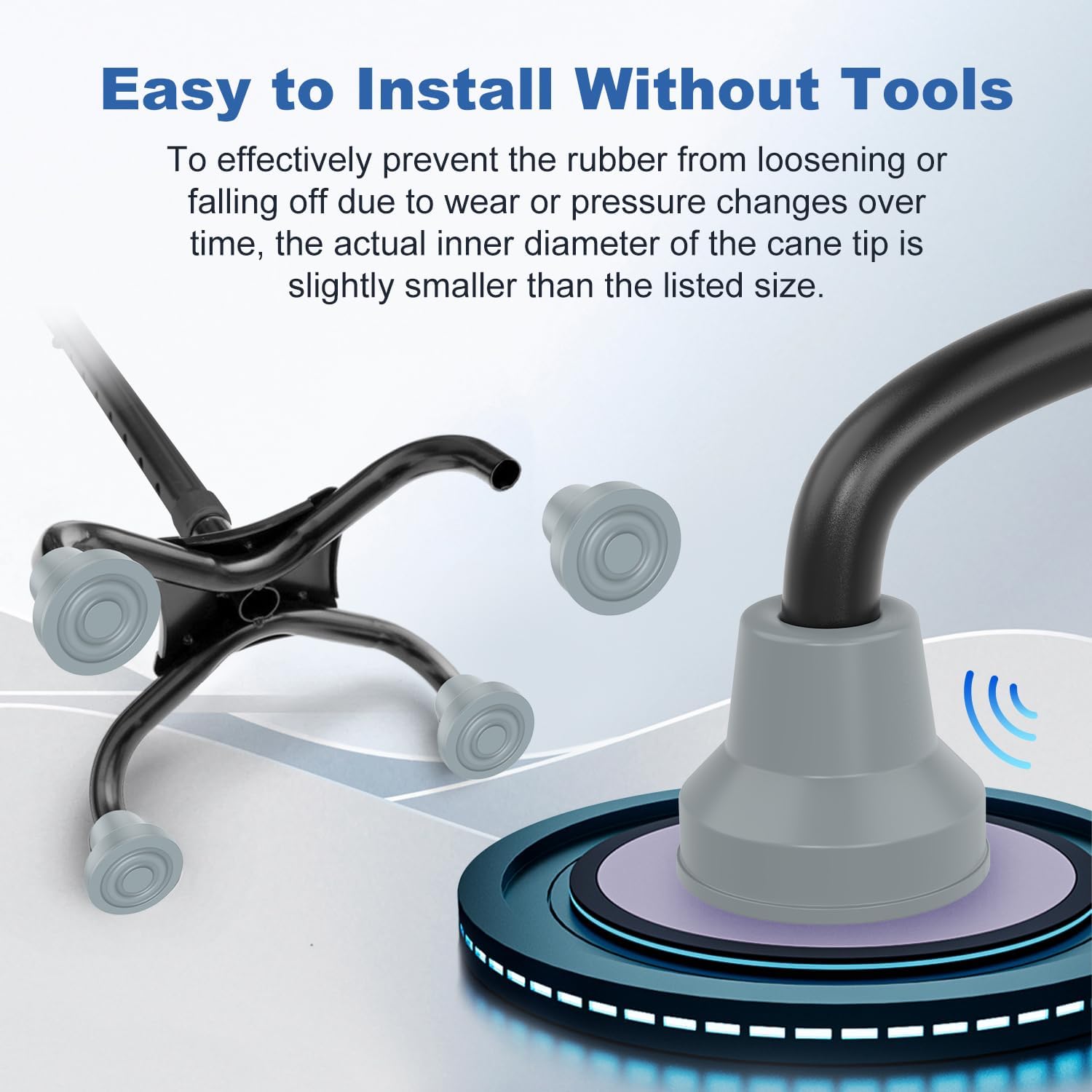 Ideal to replace old worn tips by simply inserting the bottom of your walking stick into this cane tip, pushing down, and rotating for a firm fix