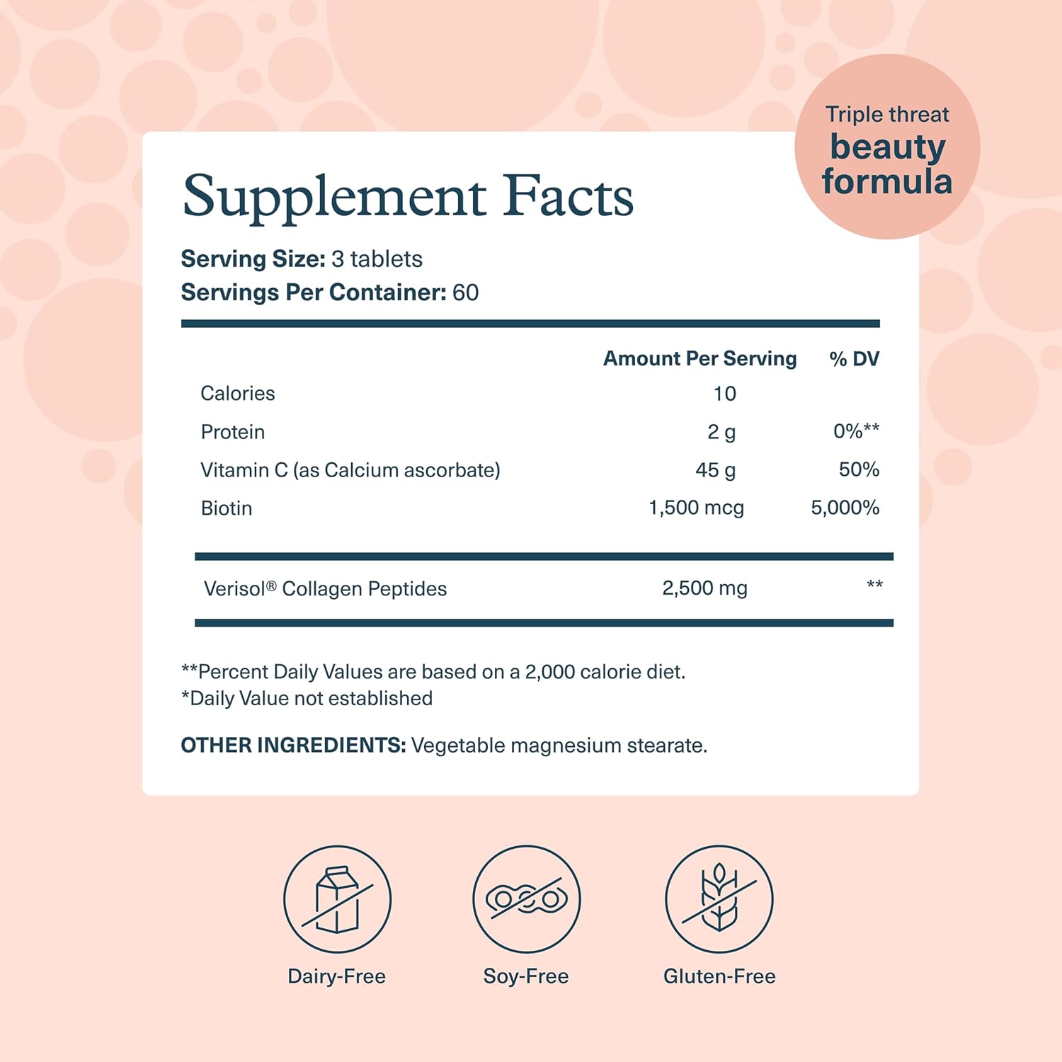 Advanced Verisol Formula: Features clinically studied VERISOL collagen peptides, helping to support healthy skin, appearance of wrinkles, and skin firmness*